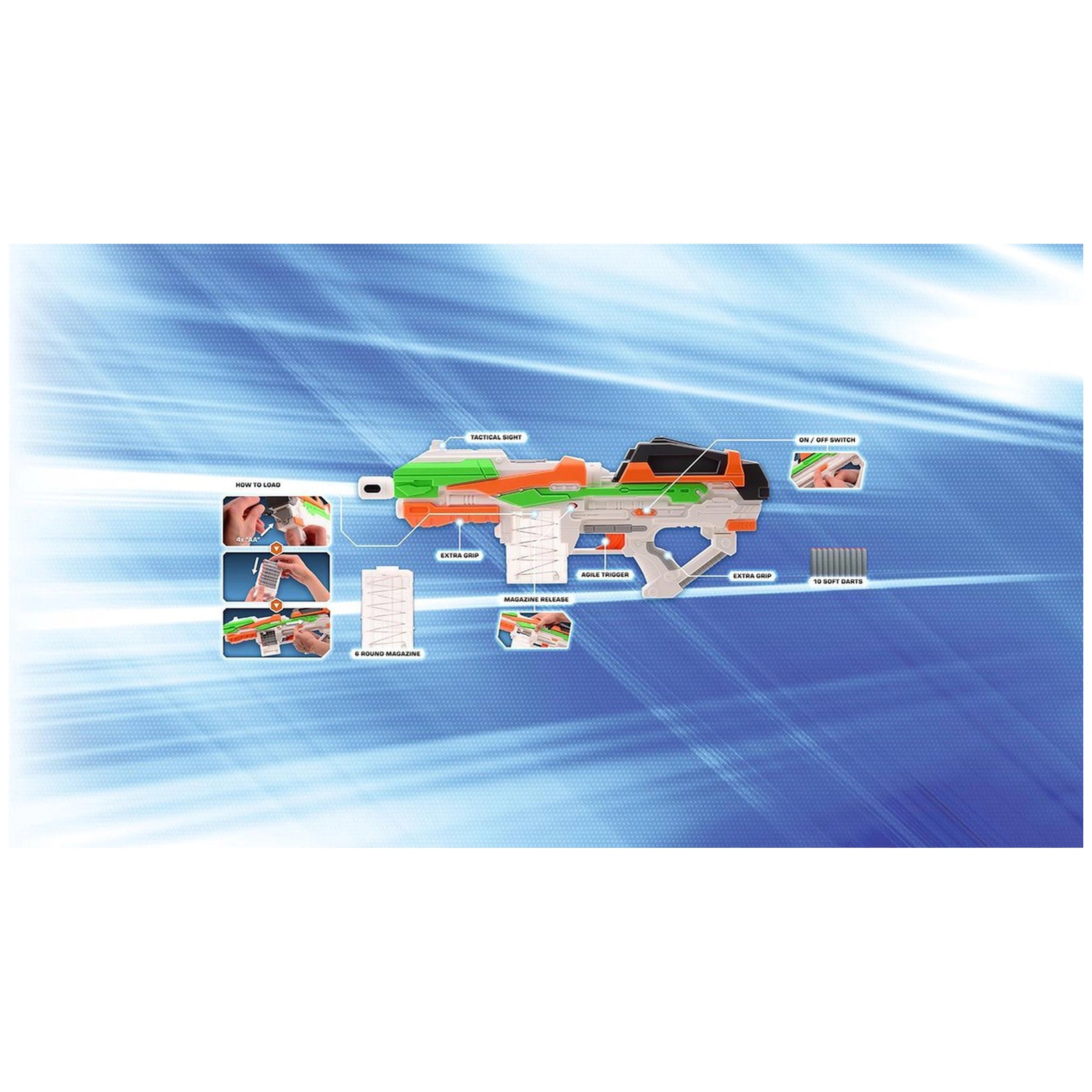 Johntoy - Tack Pro Revenant mit 10 Pfeilen 54 cm - Outdoor-Spielzeug Wir präsentieren den Johntoy Tack Pro Revenant mit 10 Pfeilen, ein unverzichtbares Outdoor-Spielzeug, das für Abenteuerlustige und wettbewerbsorientierte Spieler gleichermaßen konzipiert ist. Diese innovative Spielzeugpistole kombiniert Aufregung mit Funktionalität und ermöglicht es den Nutzern, aufregende Dartkämpfe mit Freunden und Familie zu erleben. Mit ihrem beeindruckenden Design und benutzerfreundlichen Eigenschaften wird der Tack Pro Revenant zur ultimativen Wahl für Spaß im Freien. Der Tack Pro Revenant misst beeindruckende 54 Zentimeter in der Länge und ist somit eine auffällige Ergänzung für jedes Outdoor-Spielarsenal. Hergestellt aus strapazierfähigem Kunststoff, ist diese Spielzeugpistole darauf ausgelegt, den Anforderungen aktiven Spiels standzuhalten und gleichzeitig die Sicherheit aller Nutzer zu gewährleisten. Das leichte Design ermöglicht eine einfache Handhabung und macht es sowohl für Kinder als auch für Erwachsene geeignet. Egal, ob Sie einen freundlichen Wettbewerb organisieren oder einfach einen Tag im Park genießen, diese Spielzeugpistole sorgt für stundenlange Unterhaltung. Eine der herausragenden Eigenschaften des Tack Pro Revenant ist seine Fähigkeit, Pfeile bis zu einer beeindruckenden Entfernung von 20 Metern zu schießen. Diese bemerkenswerte Reichweite steigert die Aufregung beim Spielen im Freien und ermöglicht es den Spielern, strategische Kämpfe aus der Distanz zu führen. Die Pistole wird mit 10 Pfeilen geliefert, sodass Sie genügend Munition für längere Spielsitzungen haben. Die Möglichkeit, mehrere Pfeile gleichzeitig zu laden, bedeutet, dass Sie schnell hintereinander feuern können, was die Action schnell und aufregend hält. Die Benutzung des Tack Pro Revenant ist einfach und intuitiv. Die Spieler können alle 10 Pfeile problemlos in den Halter laden, sie an ihrem Platz einrasten und sich auf den Einsatz vorbereiten. Der federbelastete Mechanismus sorgt dafür, dass jeder Pfeil mit Kraft und Präzision abgeschossen wird, sodass jeder Schuss zählt. Ziehen Sie einfach den Ladehebel zurück, zielen Sie und drücken Sie den Abzug, um eine Flut von Pfeilen auf Ihre Gegner loszulassen. Diese nahtlose Bedienung macht es Spielern aller Fähigkeitsstufen zugänglich, von Anfängern bis hin zu erfahrenen Profis. Sicherheit hat oberste Priorität beim Spielen im Freien, und der Tack Pro Revenant ist mit diesem Gedanken entworfen. Die Pfeile bestehen aus weichen Materialien, die das Verletzungsrisiko während des Spiels minimieren. Eltern können beruhigt sein, dass ihre Kinder den Nervenkitzel von Dartkämpfen genießen können, ohne die Sicherheit zu gefährden. Darüber hinaus machen die lebendigen Farben und das schlanke Design der Pistole sie optisch ansprechend, sodass sie beim Spielen auffällt. Zusammenfassend lässt sich sagen, dass der Johntoy Tack Pro Revenant mit 10 Pfeilen das perfekte Outdoor-Spielzeug für alle ist, die ihren Freizeitaktivitäten Aufregung verleihen möchten. Mit seiner beeindruckenden Reichweite, der schnellen Ladefunktion und dem sicherheitsbewussten Design sorgt diese Spielzeugpistole für endlosen Spaß für Spieler jeden Alters. Verpassen Sie nicht die Gelegenheit, Ihr Outdoor-Spielerlebnis zu verbessern – schnappen Sie sich noch heute Ihren Tack Pro Revenant und machen Sie sich bereit, Ihren Weg zum Sieg zu tacken!