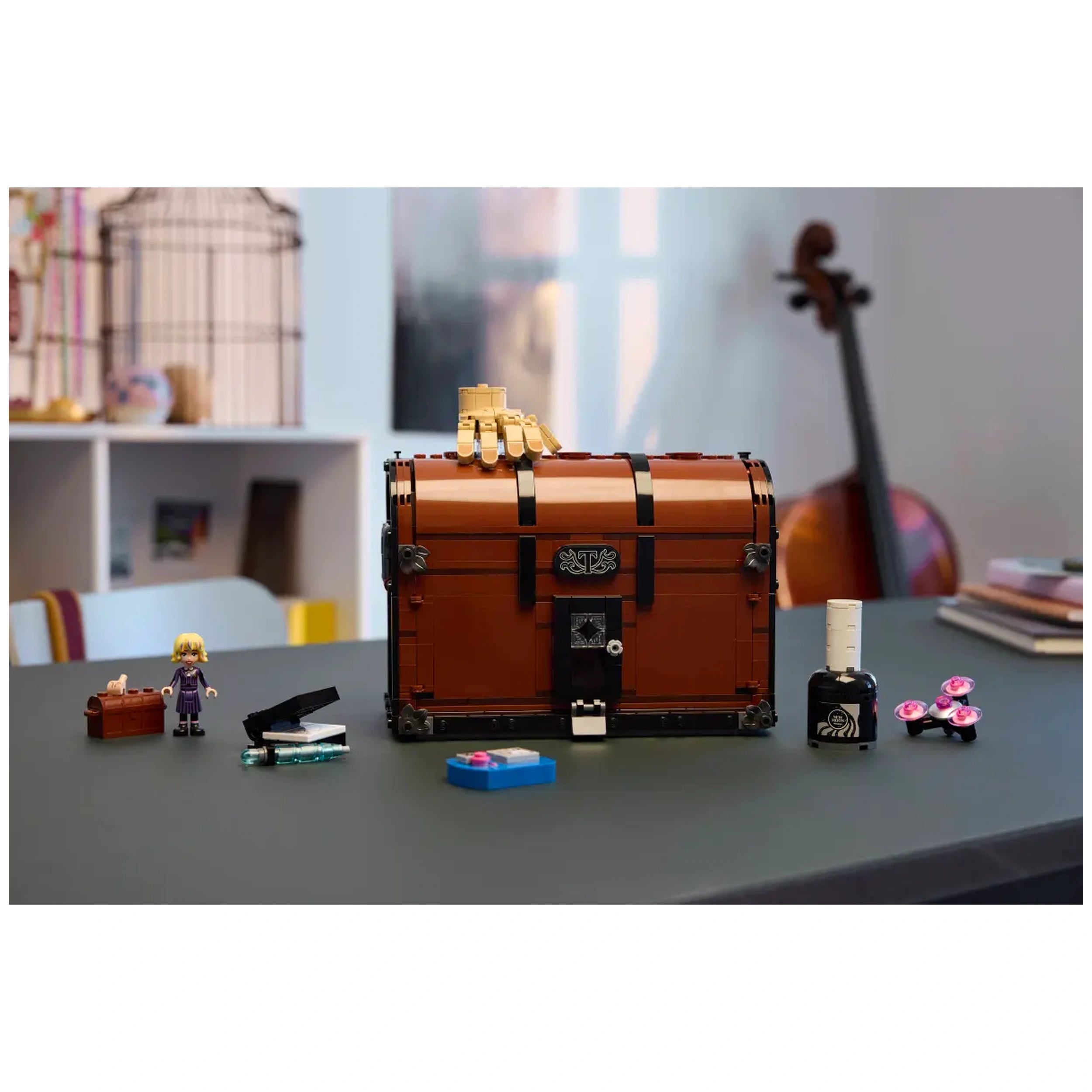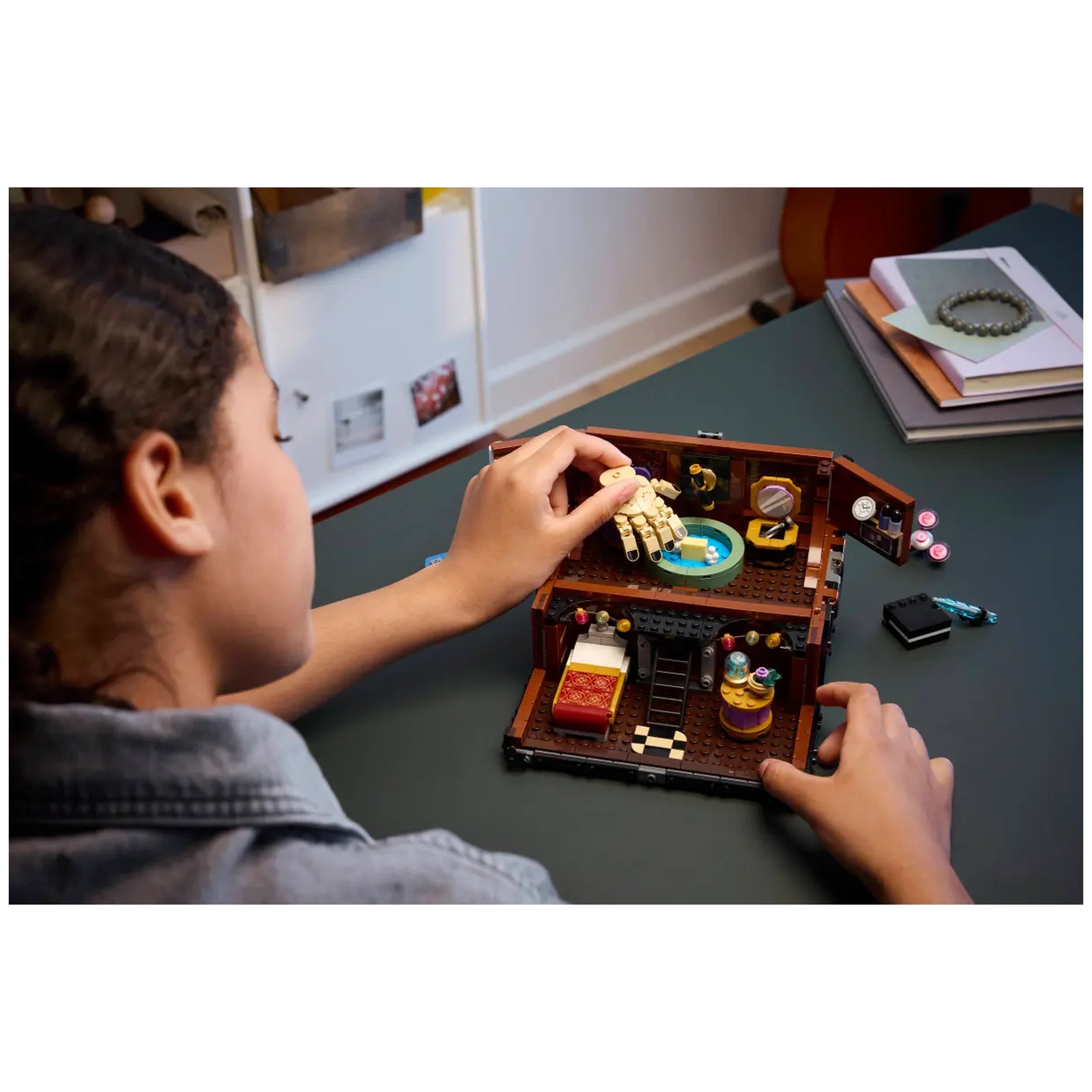 LEGO - Wednesdays Thing's Apartment - Konstruktionsspielzeug Präsentieren Sie das LEGO Wednesdays Thing's Apartment Konstruktionsspielzeug, ein fesselndes Bauerlebnis, das für Fans ab 10 Jahren konzipiert ist. Dieses sorgfältig gestaltete Set lädt junge Baumeister ein, in die skurrile Welt von Wednesday Addams einzutauchen und bietet endlose Möglichkeiten für kreatives Spiel. Mit 828 Teilen ist dieses Konstruktionsset nicht nur ein Spielzeug; es ist ein Portal zu einem Reich voller Geheimnisse und Abenteuer, das sowohl Kinder als auch Sammler begeistern wird. Das LEGO Wednesdays Thing’s Apartment Set verfügt über ein einzigartiges Trunk-Design, das sich öffnet und einen gemütlichen Wohnraum mit charmanten Details enthüllt. Im Inneren entdecken die Baumeister ein Bett, einen Stuhl, einen Hut und eine Uhr sowie spezielle Plätze für Nagelsticker, Nagellack und Handcreme. Dieses durchdachte Layout regt zu fantasievollen Erzählungen an und ermöglicht es den Fans, ikonische Szenen aus der Serie nachzustellen oder ihre eigenen skurrilen Geschichten zu erfinden. Die Aufnahme einer posierbaren Thing-Figur und einer Enid-Minidoll-Figur fügt eine zusätzliche Ebene des Spaßes hinzu und macht dieses Set zu einem Muss für jeden Wednesday-Enthusiasten. Perfekt für Geburtstage, Halloween oder jede festliche Gelegenheit, dient dieses LEGO-Set als außergewöhnliches Geschenk für Jungen und Mädchen, die den einzigartigen Charme der Wednesday-TV-Serie schätzen. Seine Vielseitigkeit geht über die Spielzeit hinaus; es ist auch ein auffälliges Dekorationsstück für das Zimmer, das jedes Regal oder jeden Schreibtisch aufwerten kann. Die filigranen Details und lebendigen Farben sorgen dafür, dass dieses Set ein Gesprächsthema wird und Fans jeden Alters anspricht. Bauen mit LEGO macht nicht nur Spaß, sondern ist auch lehrreich. Die LEGO Builder-App verbessert das Erlebnis, indem sie intuitive Anleitungen bereitstellt, die die Benutzer durch den Montageprozess führen. Mit Funktionen, die es den Baumeistern ermöglichen, hinein zu zoomen, Modelle in 3D zu drehen und ihren Fortschritt zu verfolgen, verwandelt die App die Baureise in ein fesselndes Abenteuer. Dieser moderne Ansatz für das Konstruktionsspiel fördert Problemlösungsfähigkeiten und regt die Kreativität an, was es zu einer idealen Wahl für junge Köpfe macht. Die Funktionen für fantasievolles Spiel in diesem Set sind darauf ausgelegt, Kreativität zu inspirieren. Kinder können mit dem Trunk interagieren, indem sie den Griff drehen, um die „Dusche“-Funktion zu aktivieren, oder den Trunk anheben, um auf versteckte Fächer zuzugreifen. Diese interaktiven Elemente verbessern nicht nur das Spielerlebnis, sondern ermutigen die Kinder auch, ihre Erzählfähigkeiten zu erkunden. Während sie mit dem Set interagieren, entwickeln sie ihre Fähigkeiten in der Narration und im fantasievollen Spiel. Zusammenfassend ist das LEGO Wednesdays Thing's Apartment Konstruktionsspielzeug mehr als nur ein Bau-Spielzeug; es ist eine Einladung, die bezaubernde Welt von Wednesday Addams zu erkunden. Ob als Geschenk oder persönliche Belohnung, dieses Set verspricht Stunden voller Spaß und Kreativität. Verpassen Sie nicht die Gelegenheit, dieses einzigartige Stück des Wednesday-Universums in Ihr Zuhause zu bringen. Bestellen Sie Ihr LEGO Wednesdays Thing's Apartment Set noch heute und begeben Sie sich auf ein aufregendes Bauabenteuer!