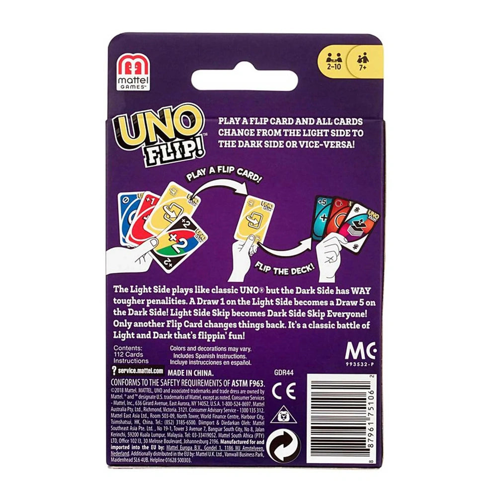 Introducing Mattel's UNO Flip!™ – a thrilling evolution of the beloved classic card game that promises to elevate your game nights to new heights. This innovative version introduces a double-sided deck and a unique FLIP card, adding layers of strategy and excitement that will keep players on their toes. Whether you're a seasoned UNO veteran or a newcomer, UNO Flip!™ offers a fresh twist that enhances the traditional gameplay you know and love.