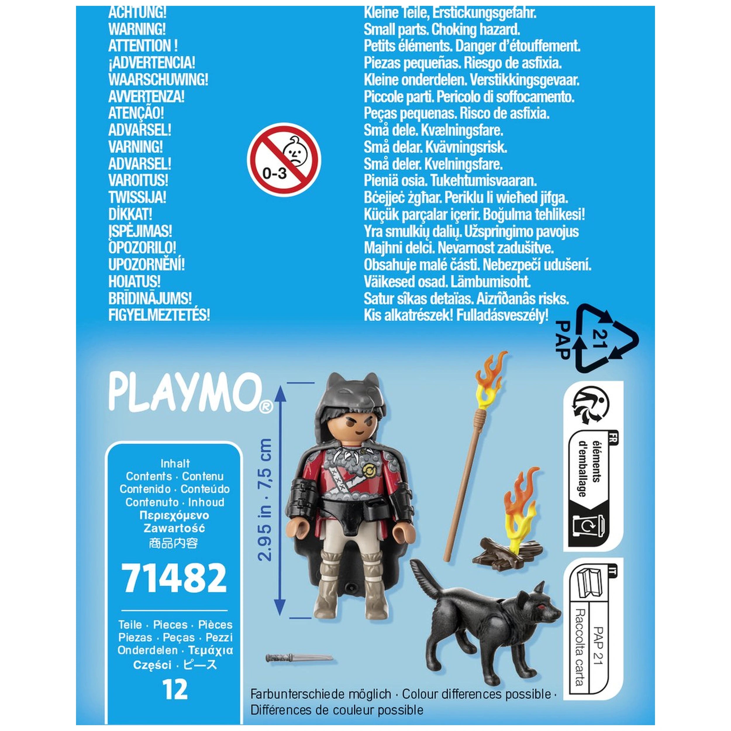 Introducing the Playmobil Specials Warrior With Wolf - 71482, a captivating playset designed to ignite the imagination of children aged four and above. This meticulously crafted set features a fierce warrior accompanied by a loyal wolf, offering endless opportunities for creative storytelling and adventurous play. With 12 intricately designed pieces, this set is perfect for young explorers eager to embark on thrilling quests in their imaginative worlds.