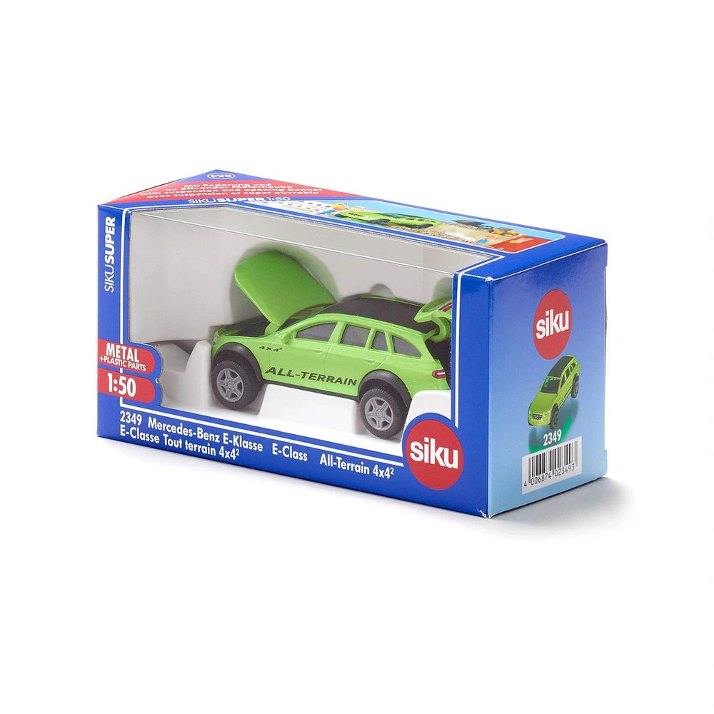 Introducing the Siku - Mercedes-Benz E-Class All-Terrain 4X4 Play Vehicle, a remarkable toy that combines the elegance of a luxury vehicle with the rugged capabilities of an off-road machine. This meticulously crafted model is designed for children and collectors alike, offering an authentic representation of the original Mercedes-Benz E-Class All-Terrain. With its unique features and attention to detail, this play vehicle is sure to captivate the imagination of any young adventurer or automotive enthusiast.