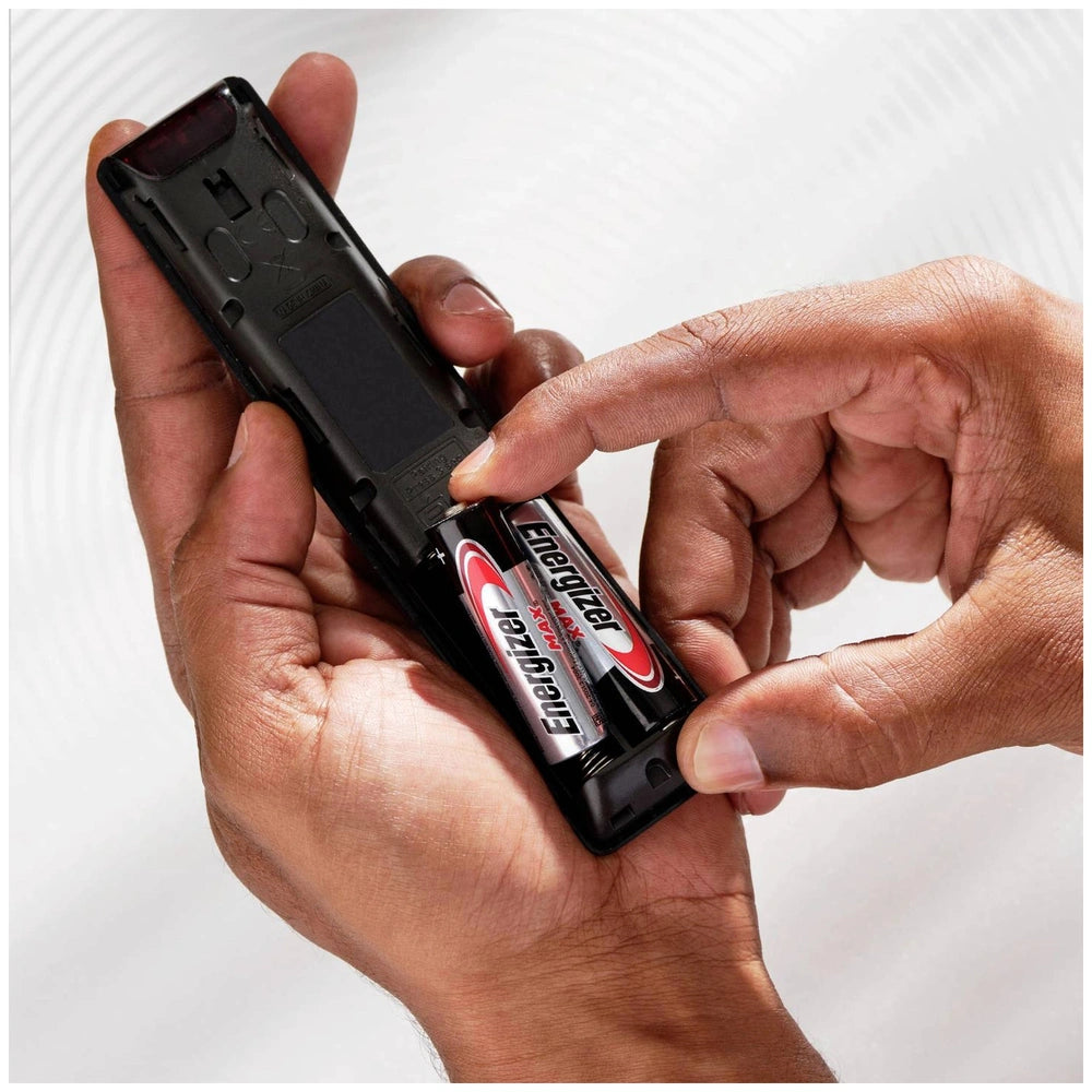 Energizer Max AAA batteries in red and black casing with silver terminals, displaying "Energizer MAX" and capacity details.