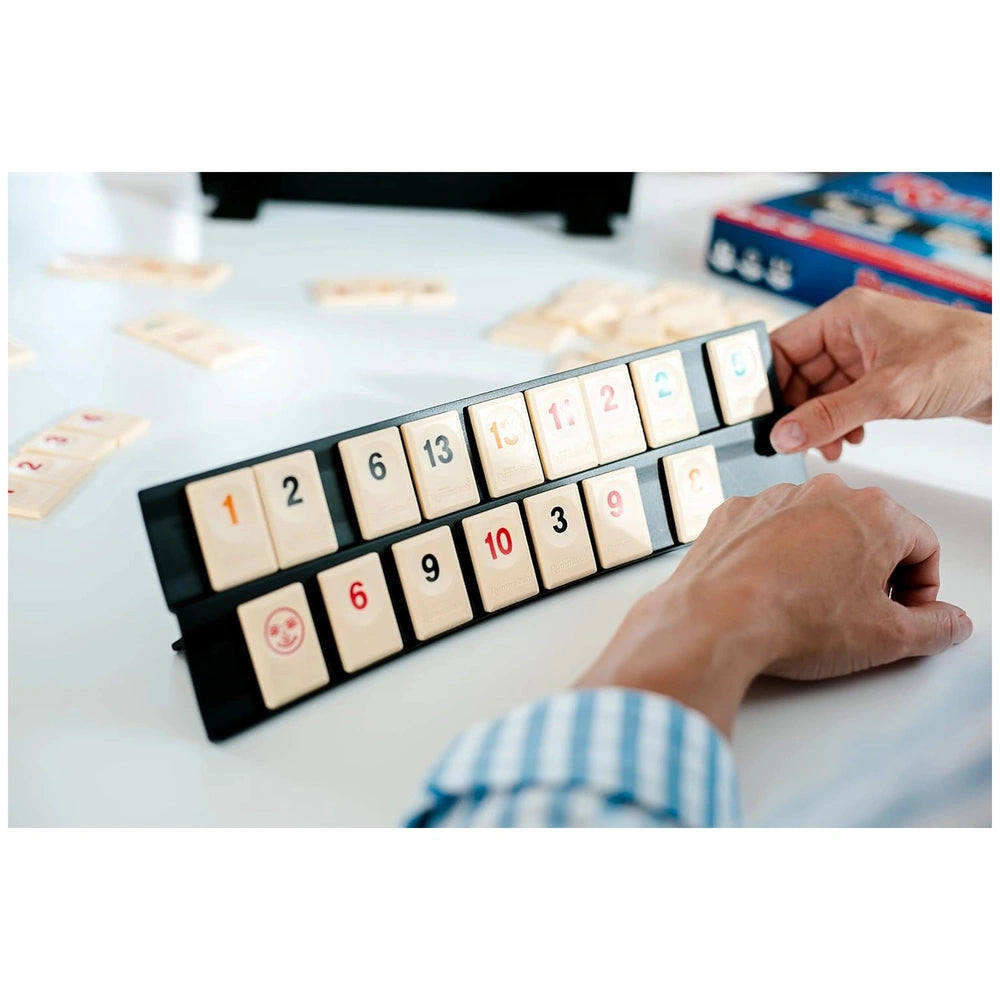 Rummikub is designed for 2 to 4 players, and can even be played in teams, allowing for a versatile gaming experience. The objective is simple yet challenging: be the first to get rid of all your numbered tiles by forming sets and runs on the table. With 106 tiles featuring numbers from 1 to 13 in four different colors, plus two wild tiles, the game offers endless possibilities for combinations and strategies. Each session is quick-paced and uniquely different, ensuring that no two games are ever the same.