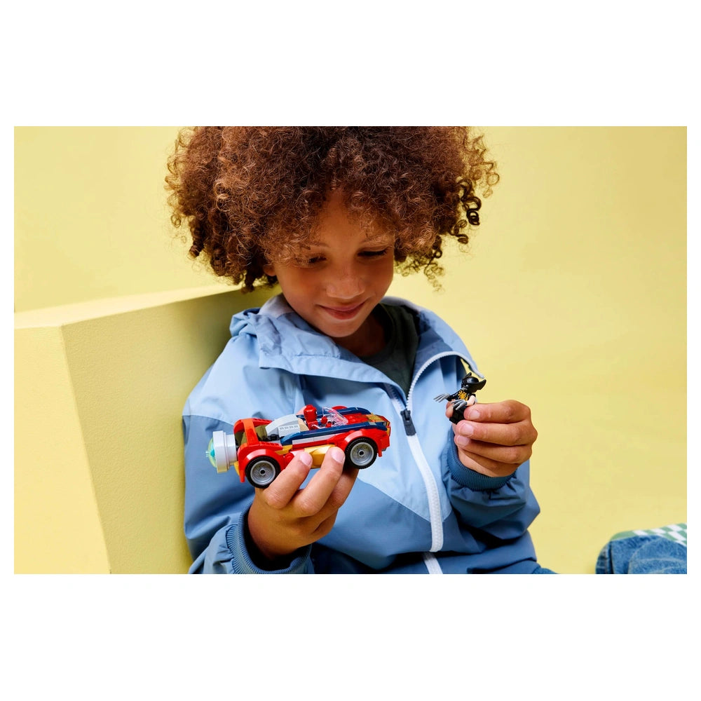 LEGO - Super Heroes Spider-Man Auto gegen Venomized Wolverine - Konstruktionsspielzeug Präsentieren Sie das LEGO - Super Heroes - Spider-Man Auto gegen Venomized Wolverine Konstruktionsset (76336), ein aufregendes Bau-Spielzeug, das die Fantasie junger Superhelden-Enthusiasten ab 7 Jahren anregt. Dieses dynamische Set enthält ein kampfbereites Fahrzeug und zwei ikonische Minifiguren, Spider-Man und den neu eingeführten Venomized Wolverine, was es zu einem Muss für Sammler und Fans des Marvel-Universums macht. Mit 134 Teilen bietet dieses Konstruktionsset ein fesselndes Bauerlebnis, das in einem epischen Duell zwischen zwei beliebten Charakteren gipfelt. Das Spider-Man Auto ist nicht einfach nur ein Fahrzeug; es ist mit einem Auslösermechanismus ausgestattet, der zwei Federabschussgeräte von vorne abfeuert, sodass Kinder actionreiche Szenen aus ihren Lieblings-Marvel-Filmen nachstellen können. Dieses interaktive Feature verbessert das Spielerlebnis und ermutigt Kinder, sich in fantasievolles Rollenspiel zu vertiefen, während sie aufregende Kämpfe navigieren. Das detaillierte Design des Autos, kombiniert mit den lebhaften Minifiguren, bringt die Aufregung des Marvel-Universums direkt in ihre Hände. Dieses Set ist perfekt für junge Baumeister, die sowohl Fahrzeuge als auch Superhelden mögen. Die Einbeziehung von Venomized Wolverine verleiht der LEGO ǀ Marvel-Reihe eine einzigartige Wendung und macht dieses Set zu einem herausragenden Geschenk für Geburtstage, Feiertage oder besondere Anlässe. Die Kombination aus Bauen und fantasievollem Spiel unterhält nicht nur, sondern fördert auch Kreativität und Problemlösungsfähigkeiten bei Kindern, was es zu einer pädagogischen Wahl macht. Für zusätzlichen Komfort bietet die LEGO Builder App leicht verständliche digitale Anleitungen, die es Kindern ermöglichen, mit Zuversicht zu bauen. Sie können hineinzoomen, in 3D drehen und ihren Fortschritt verfolgen, um ein reibungsloses Bauerlebnis zu gewährleisten. Dieser moderne Ansatz für Bausets verbessert das traditionelle LEGO-Erlebnis und macht es für eine neue Generation von Baumeistern zugänglich und unterhaltsam. Neben dem Spider-Man Auto gegen Venomized Wolverine Set bietet LEGO ein riesiges Universum von Fahrzeugen, einschließlich Autos und Motorrädern, die für noch mehr spaßige Abenteuer kombiniert werden können. Diese umfangreiche Auswahl ermöglicht es Kindern, ihre Spiel-Szenarien zu erweitern und eine Welt zu schaffen, in der ihre Lieblingscharaktere interagieren und gemeinsam neue Missionen antreten können. Verpassen Sie nicht die Chance, die nächste Generation von Superhelden zu inspirieren. Rüsten Sie Ihr Kind mit dem LEGO - Super Heroes - Spider-Man Auto gegen Venomized Wolverine Konstruktionsset aus und beobachten Sie, wie es in eine Welt voller Kreativität, Action und endloser Möglichkeiten eintaucht. Bestellen Sie jetzt und lassen Sie die Abenteuer beginnen!