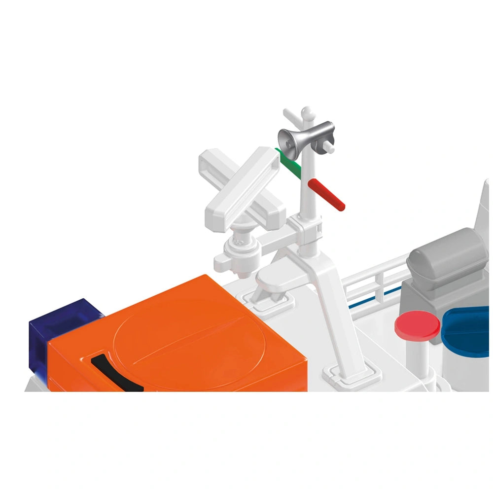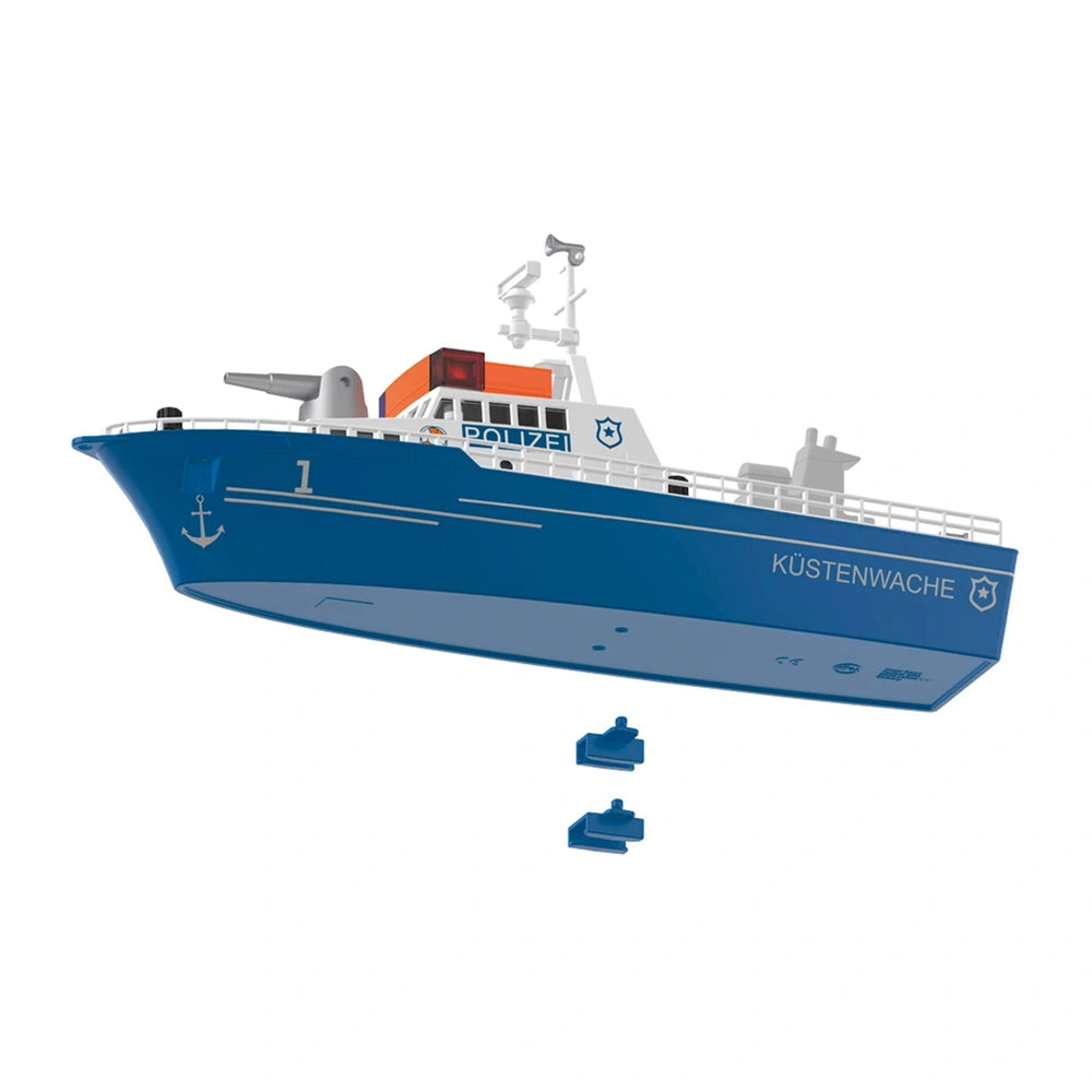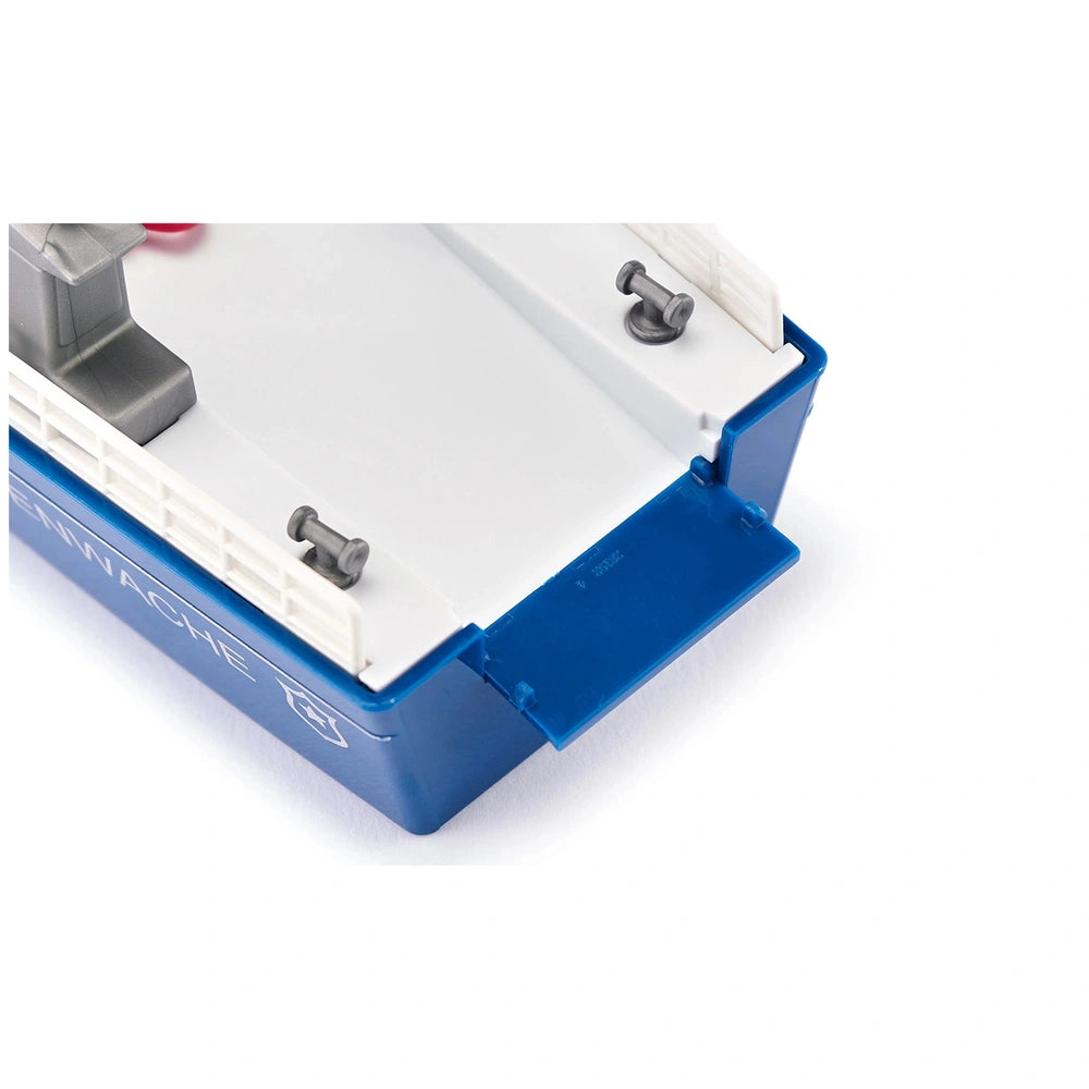 The Siku Police Boat is designed for compatibility with popular motors from other system toys, thanks to an adapter that allows for easy integration. This feature encourages children to expand their play possibilities, creating a dynamic play environment where they can combine different vehicles and accessories. Additionally, a large buoy is included, providing a realistic anchoring option when the boat is not in pursuit, adding another layer of engagement to the playtime experience.