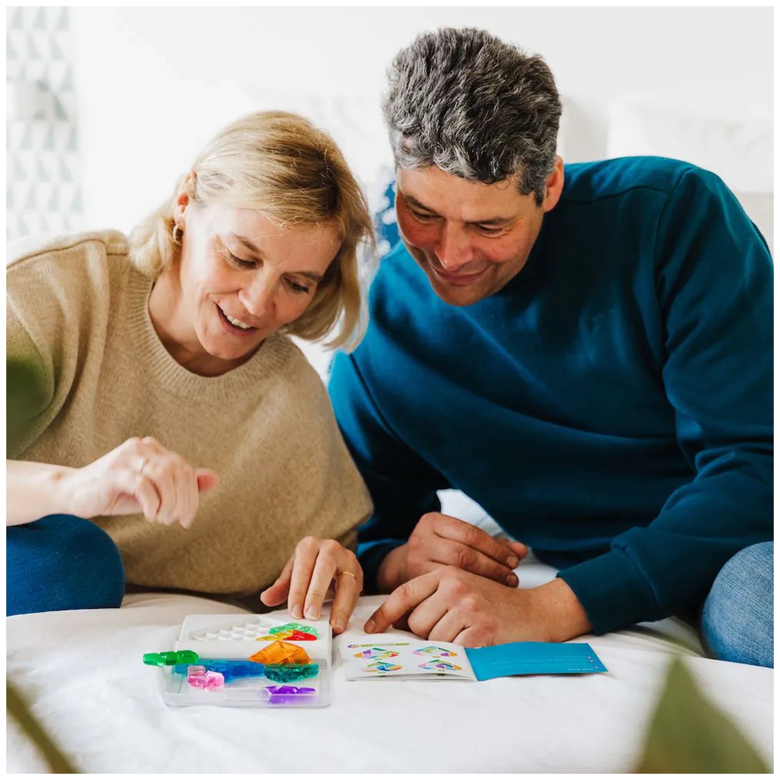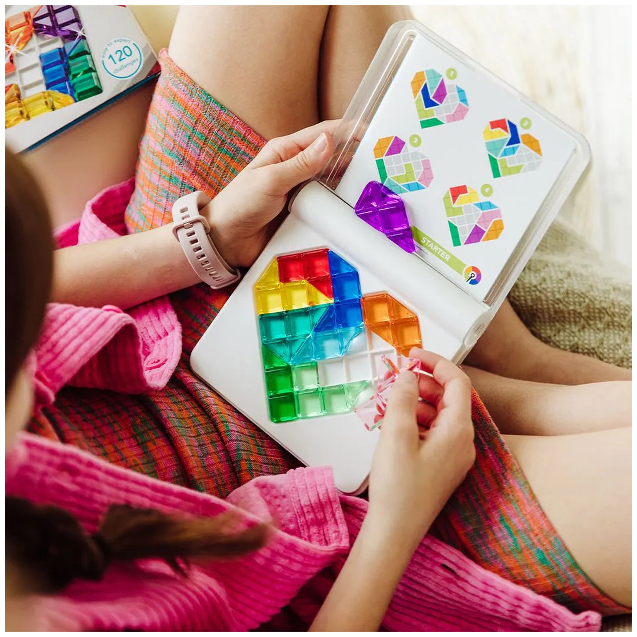 Inside the box, you'll find everything you need to get started: a sturdy game board with a lid, ten double-sided puzzle pieces, and a comprehensive booklet containing 120 challenges and their solutions. The clear instructions make it easy for players to dive right in, ensuring that everyone can enjoy the game without any confusion.