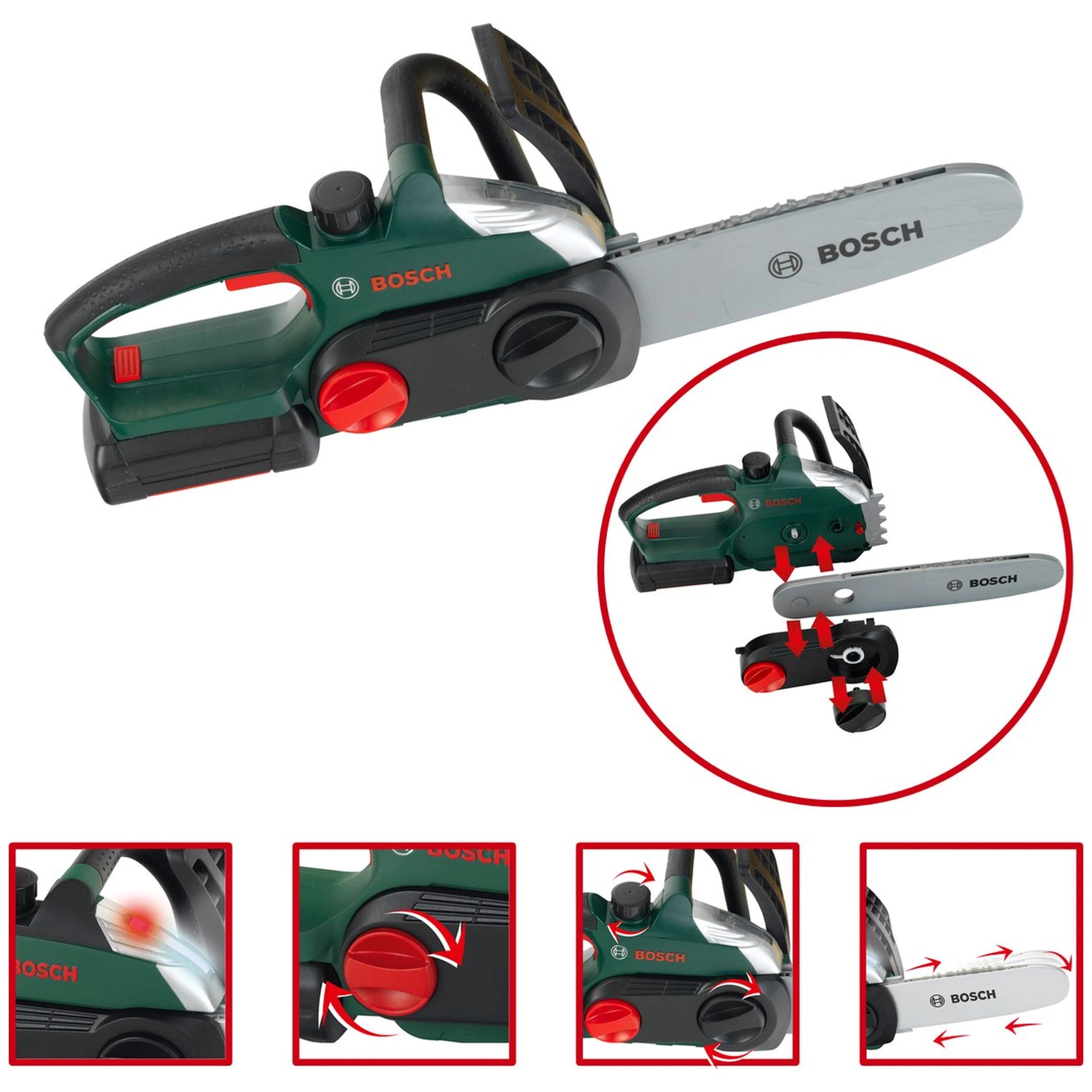 The centerpiece of this set is the Bosch Chainsaw II, which is designed to look and sound like a real chainsaw, making it an exciting addition to any child's toy collection. When activated, the chainsaw produces a rattle sound, accompanied by a flashing light that enhances the play experience. As children pretend to cut firewood or debranch trees, the saw emits a realistic sawing noise, creating an immersive experience that captivates their imagination. This attention to detail not only makes playtime more enjoyable but also helps children understand the importance of safety and responsibility when using tools.