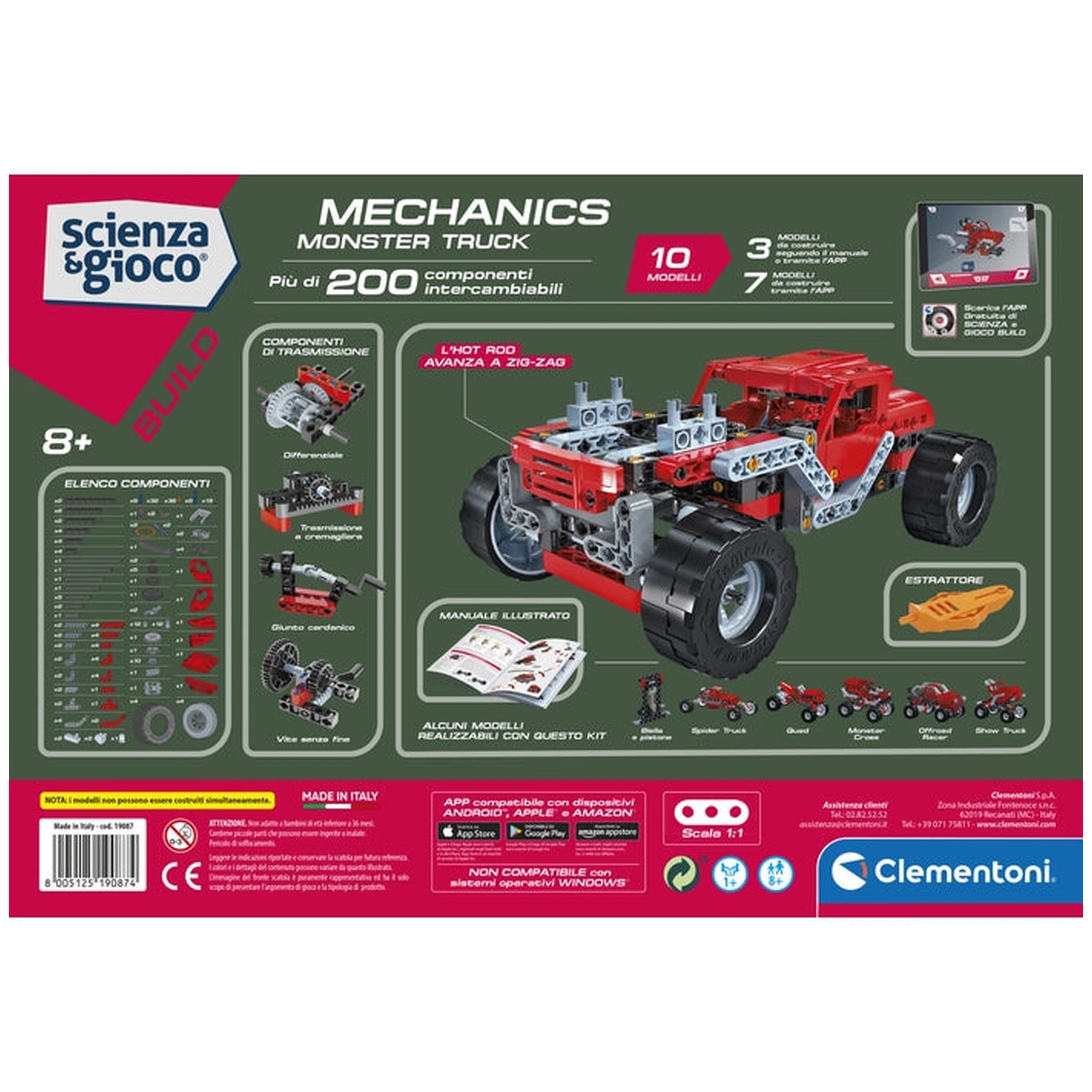 Introducing the Clementoni Scienza E Gioco Build - Mechanics Build 10 Models - Monster Truck Construction Set, an innovative educational toy designed to immerse children in the exciting realms of mechanics and engineering. This comprehensive construction set is perfect for young minds aged 8 and above, providing an engaging way to learn about the principles of mechanics while having fun. With over 200 components included, this set offers endless possibilities for creativity and exploration.