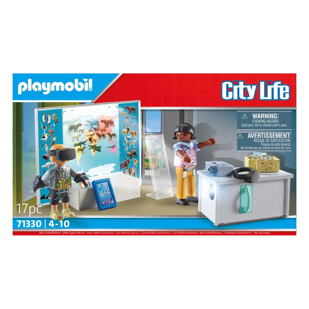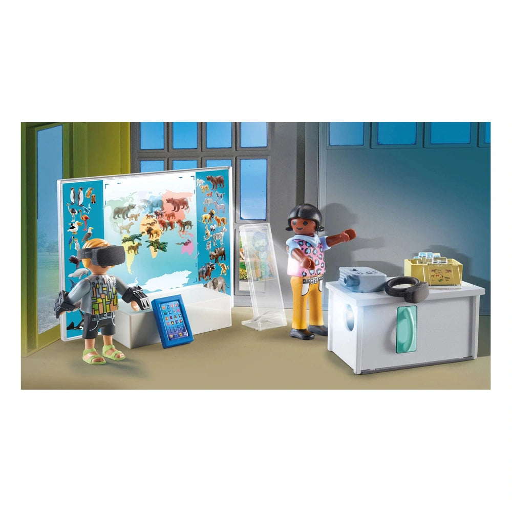 The Playmobil City Life Virtual Classroom features a sleek and contemporary design that reflects the modern educational environment. Equipped with a working projector, this set allows children to project images onto the screen, simulating a real classroom experience. The projector adds an element of realism and excitement, making lessons come alive as kids engage with the content in a fun and dynamic way. This feature not only enhances playtime but also encourages children to think critically about technology and its applications in learning.