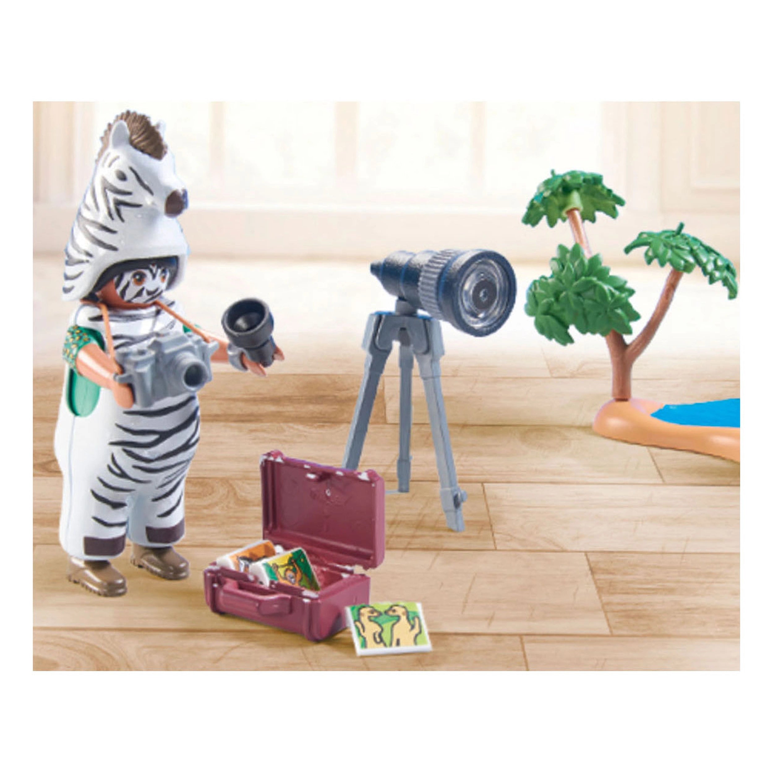 The centerpiece of this set is Sofia Palmer, equipped with her camera and a passion for capturing stunning images of animals in their natural habitats. Accompanying her is a charming zebra and its adorable foal, providing children with the opportunity to learn about these magnificent creatures while engaging in imaginative play. The inclusion of a zebra costume allows kids to immerse themselves in the role of an animal photographer, fostering creativity and storytelling as they create their own adventures.