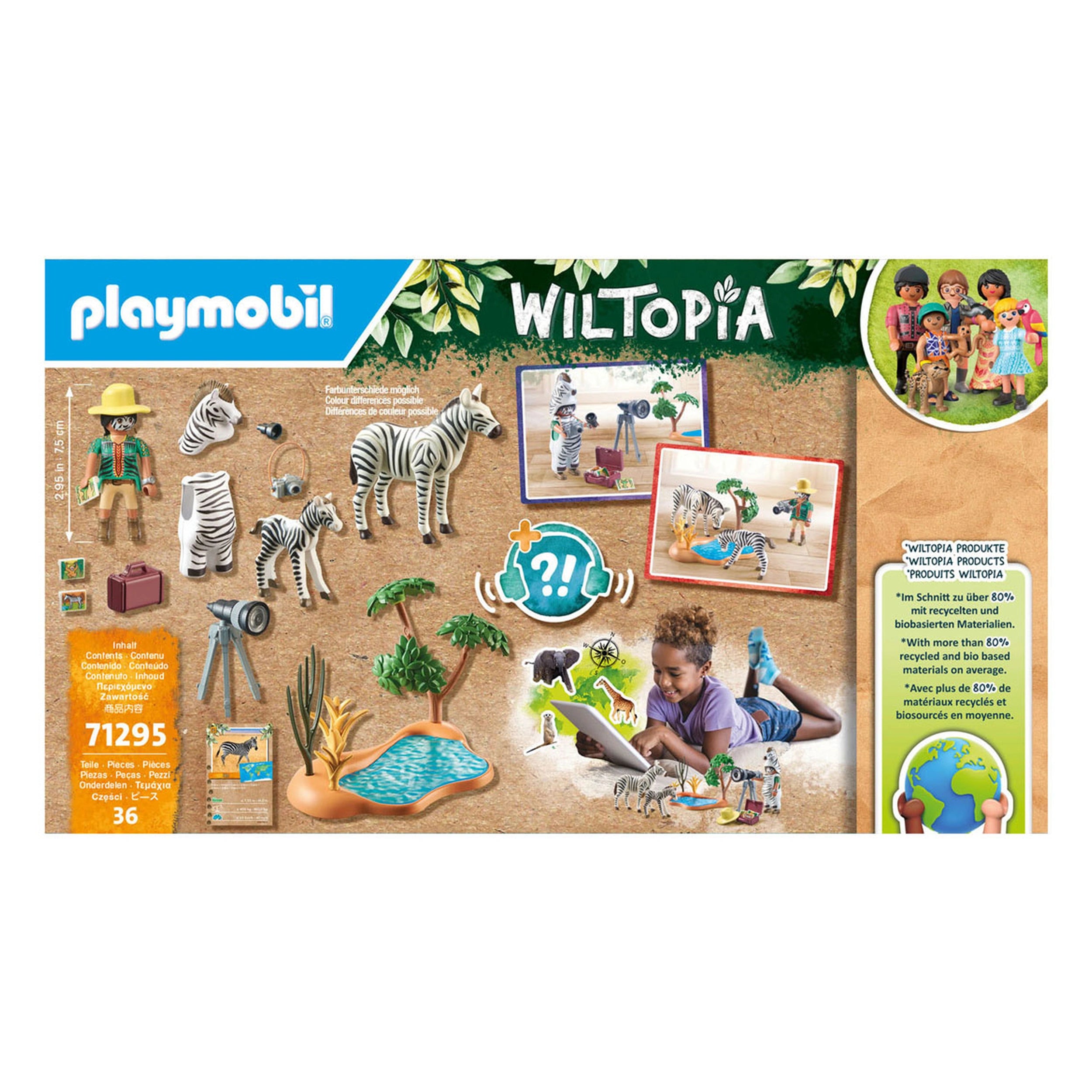 Introducing the Playmobil Wiltopia On The Road With The Animal Photographer - 71295, a captivating play set designed to inspire young imaginations while promoting sustainability. This innovative set features Sofia Palmer, a dedicated animal photographer, who embarks on thrilling adventures to capture the beauty of wildlife. With its eco-friendly materials and engaging components, this play set not only entertains but also educates children about the importance of wildlife conservation.