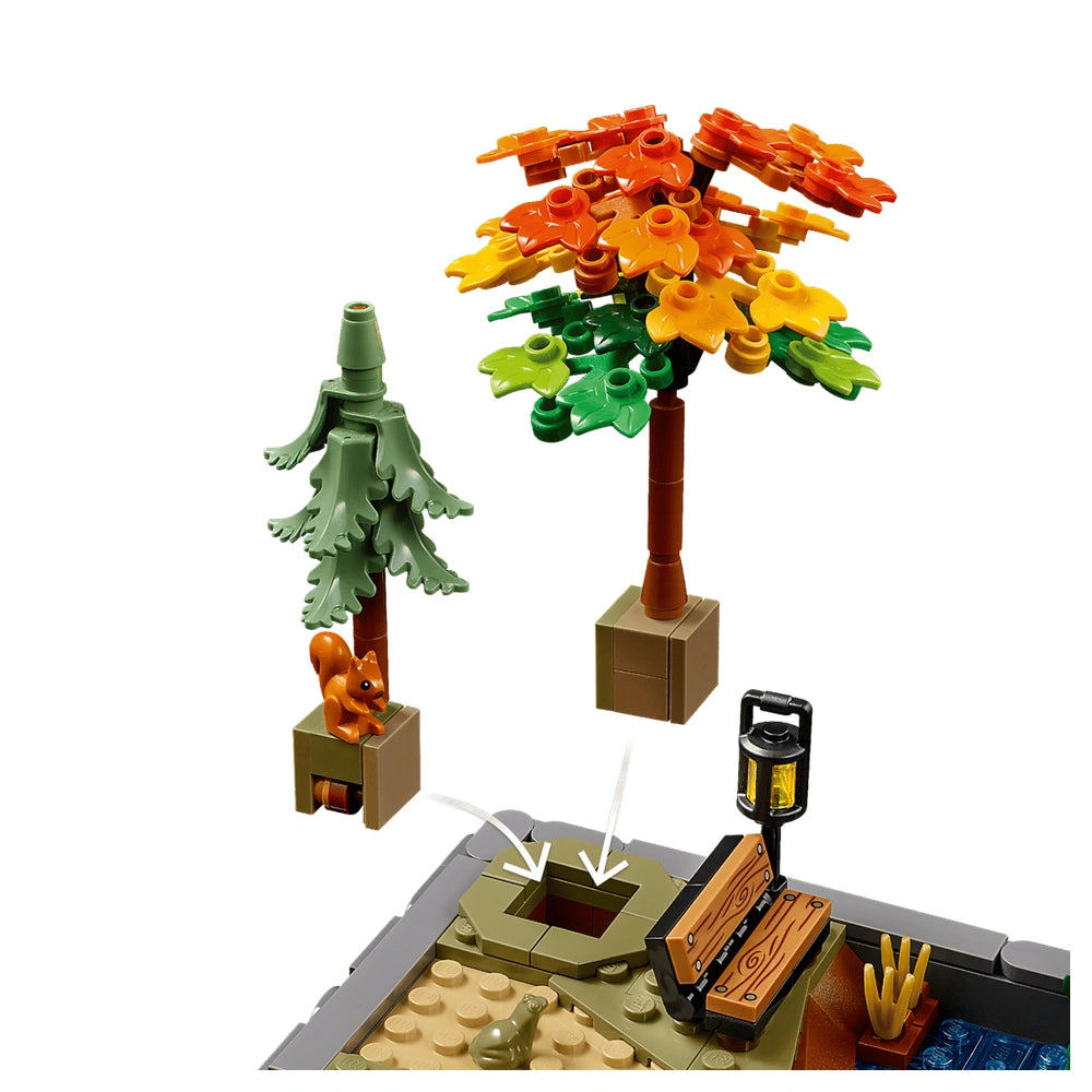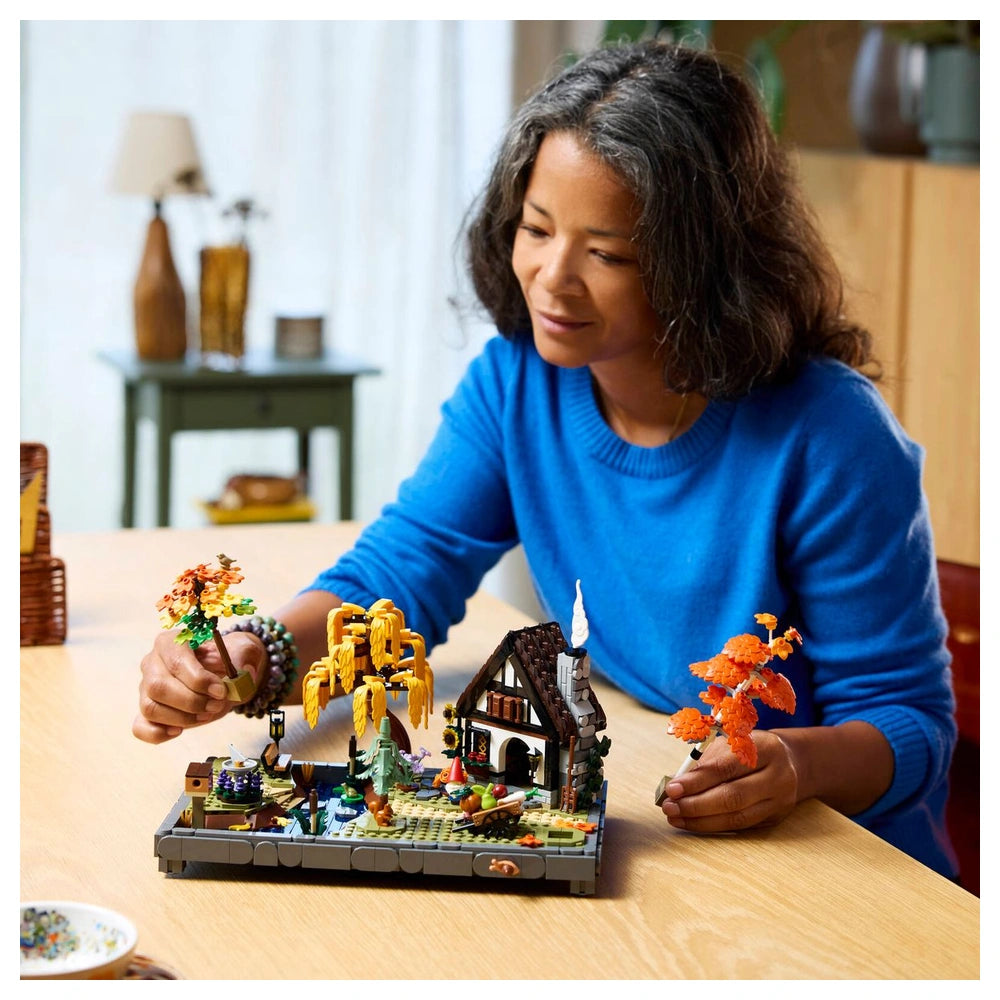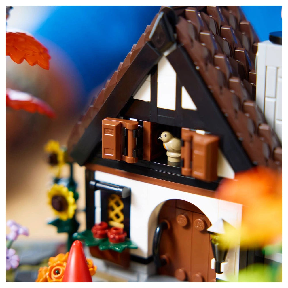 Inside the cozy cottage, you’ll find a welcoming kitchen that invites you to explore its charming interior. The set features adorable woodland creatures, including a robin, a woodpecker, a squirrel, a frog, and a snail, adding a whimsical touch to your creation. This attention to detail not only enhances the visual appeal but also provides an engaging building experience that allows you to immerse yourself in the project.
