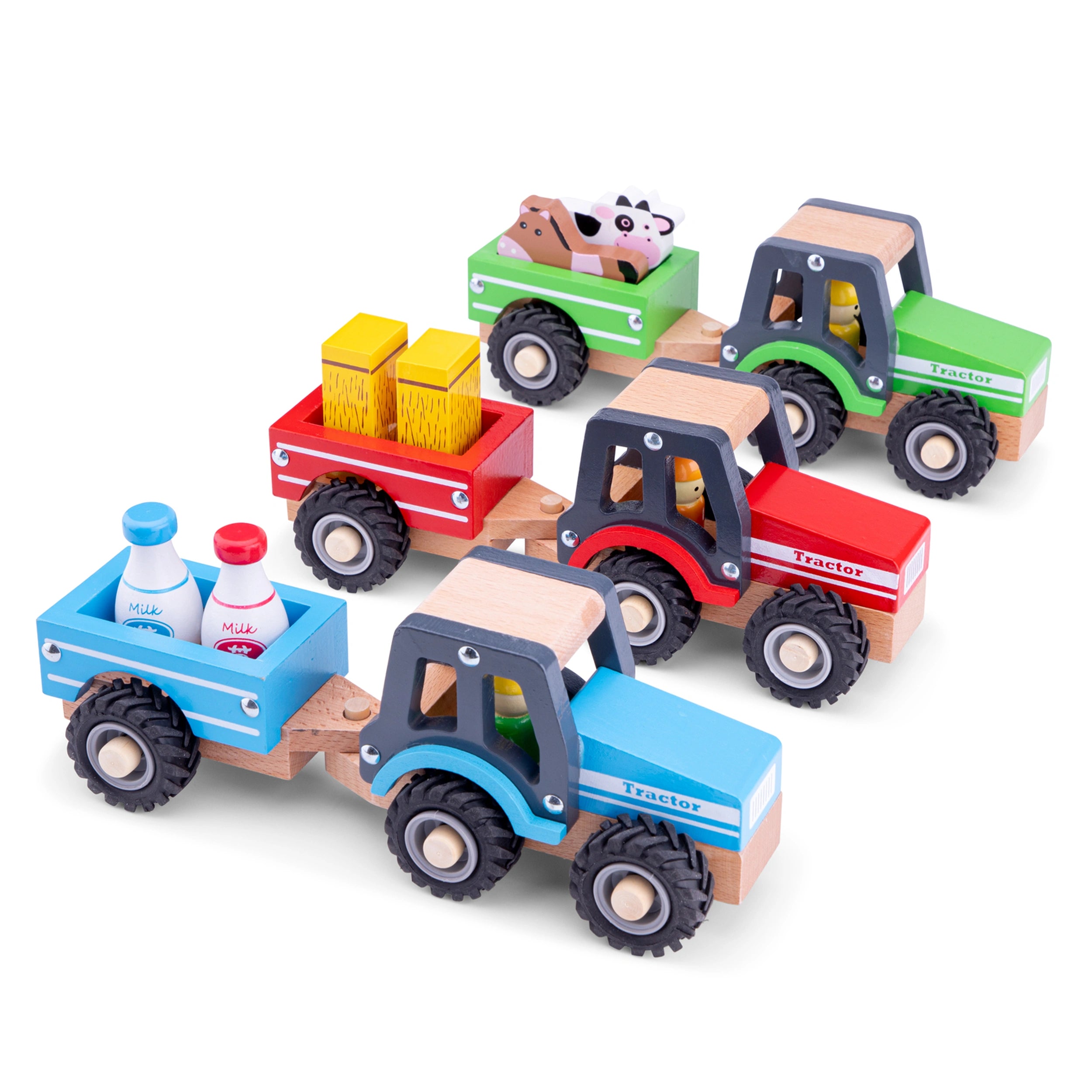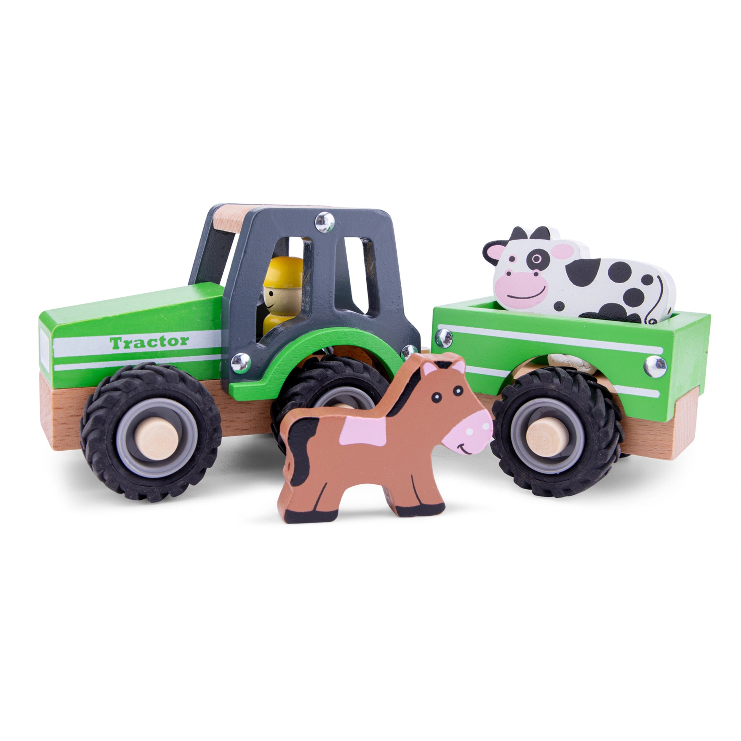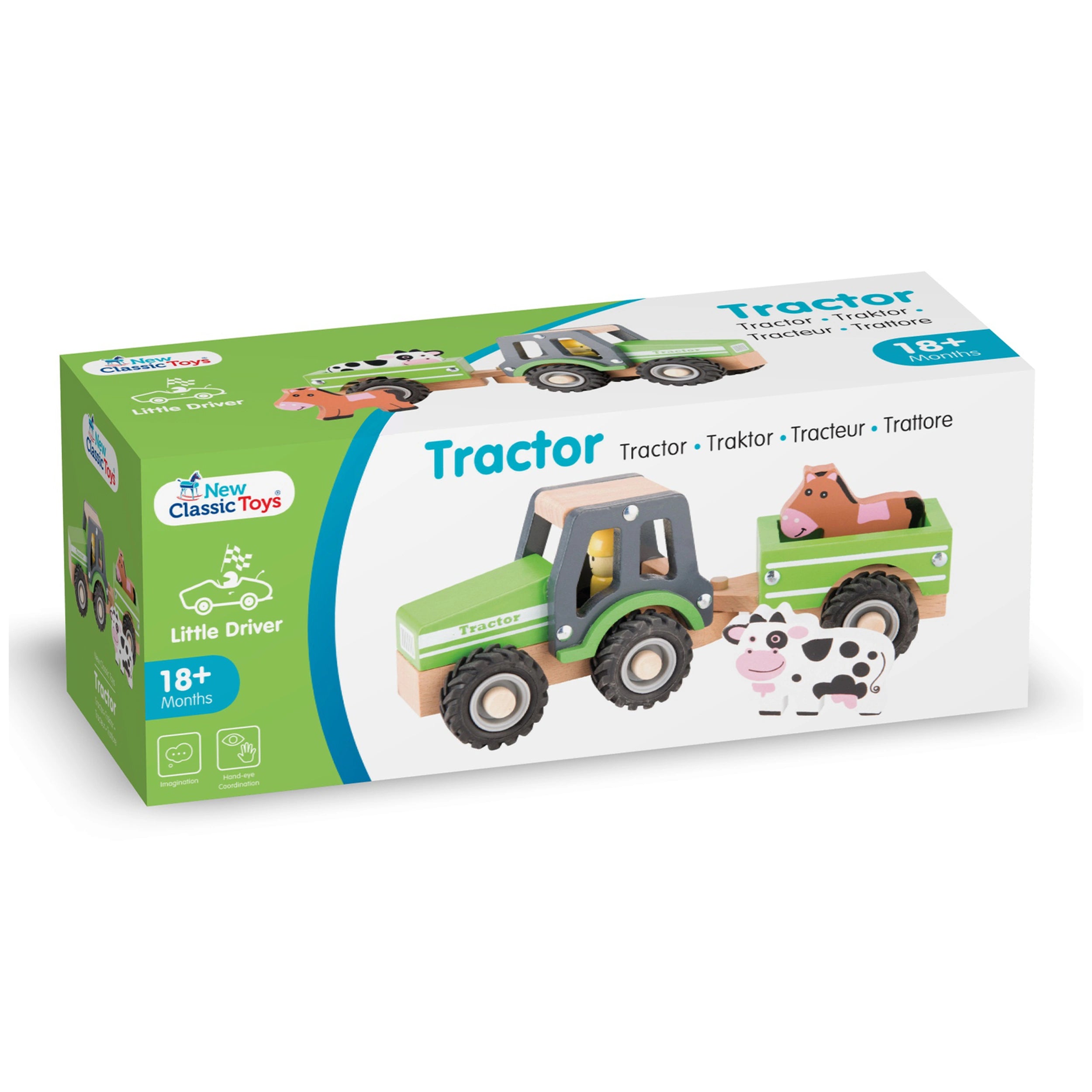 The New Classic Toys Tractor With Trailer is not only an educational tool but also a perfect addition to any child's toy collection. It encourages social interaction when played with friends or siblings, promoting teamwork and cooperative play. Whether they are reenacting farm chores or embarking on imaginative journeys through the countryside, children will find endless joy and entertainment with this versatile toy.