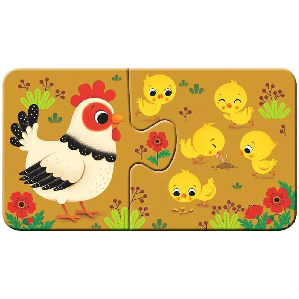 The My First Puzzle series features nine beautifully illustrated images that capture the essence of animals and their young ones, making it relatable and engaging for toddlers. Each puzzle consists of just two large, thick pieces, allowing children to easily grasp and connect them. This design not only enhances the fun but also supports the development of fine motor skills and hand-eye coordination, crucial for their growth at this stage.