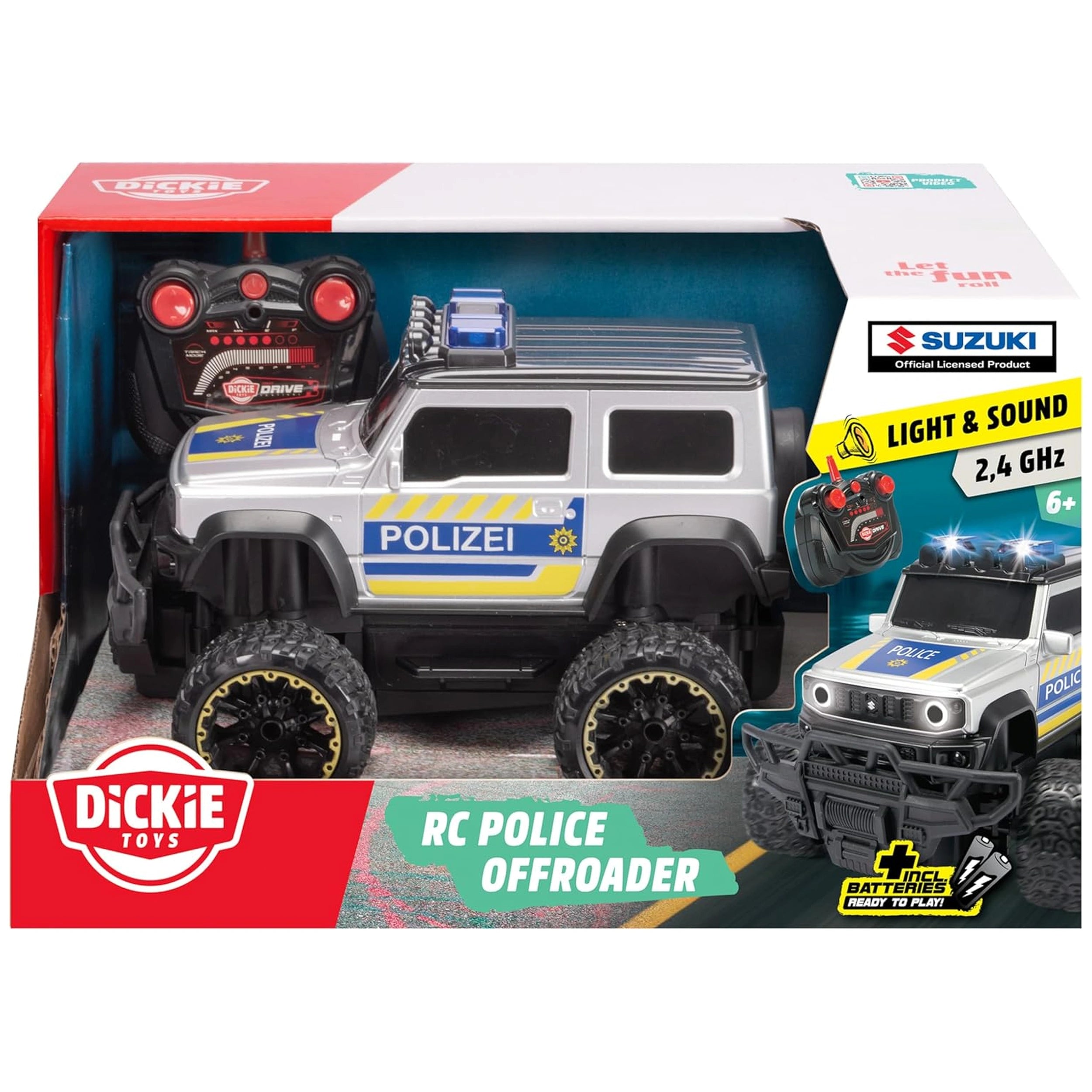 Introducing the Dickie RC Police Offroader Suzuki Jimny with Lights and Sounds, a thrilling remote-controlled vehicle designed to ignite the imagination of young adventurers. This impressive RC car is not just a toy; it’s an invitation to embark on exciting police chase scenarios, bringing the excitement of law enforcement right into your living room or backyard. With its robust SUV design and striking police-themed aesthetics, the Suzuki Jimny is set to become a favorite among children aged three and up.