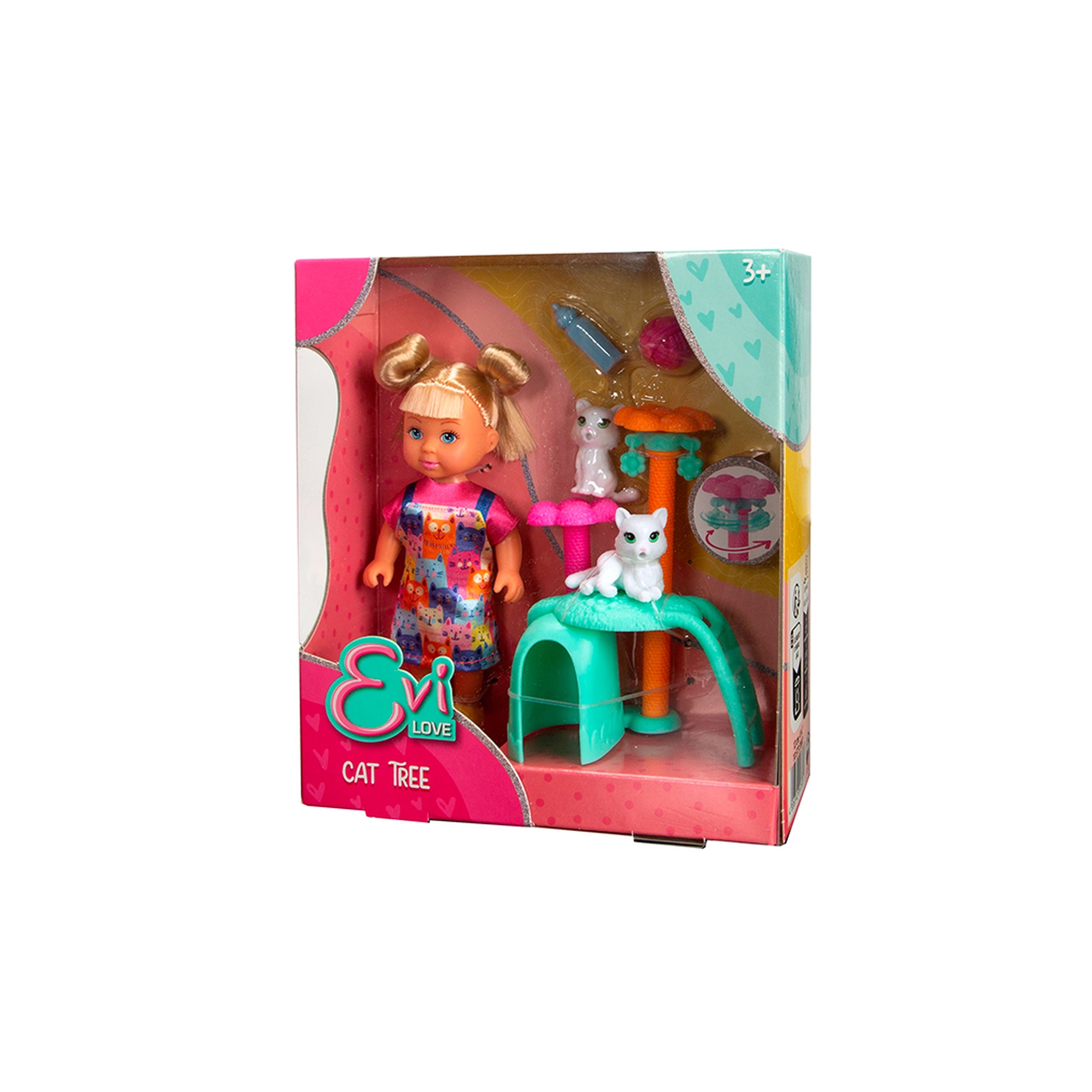 Introducing the Simba - Evi LOVE Cat Tree, a delightful playset that invites children into a whimsical world of feline fun and imaginative play. This enchanting set features Evi, a charming doll dressed in a cute cat-themed outfit, ready to embark on countless adventures with her two adorable cat companions. Designed for young animal lovers, this playset encourages creativity and nurturing skills as children engage in various activities with Evi and her furry friends.
