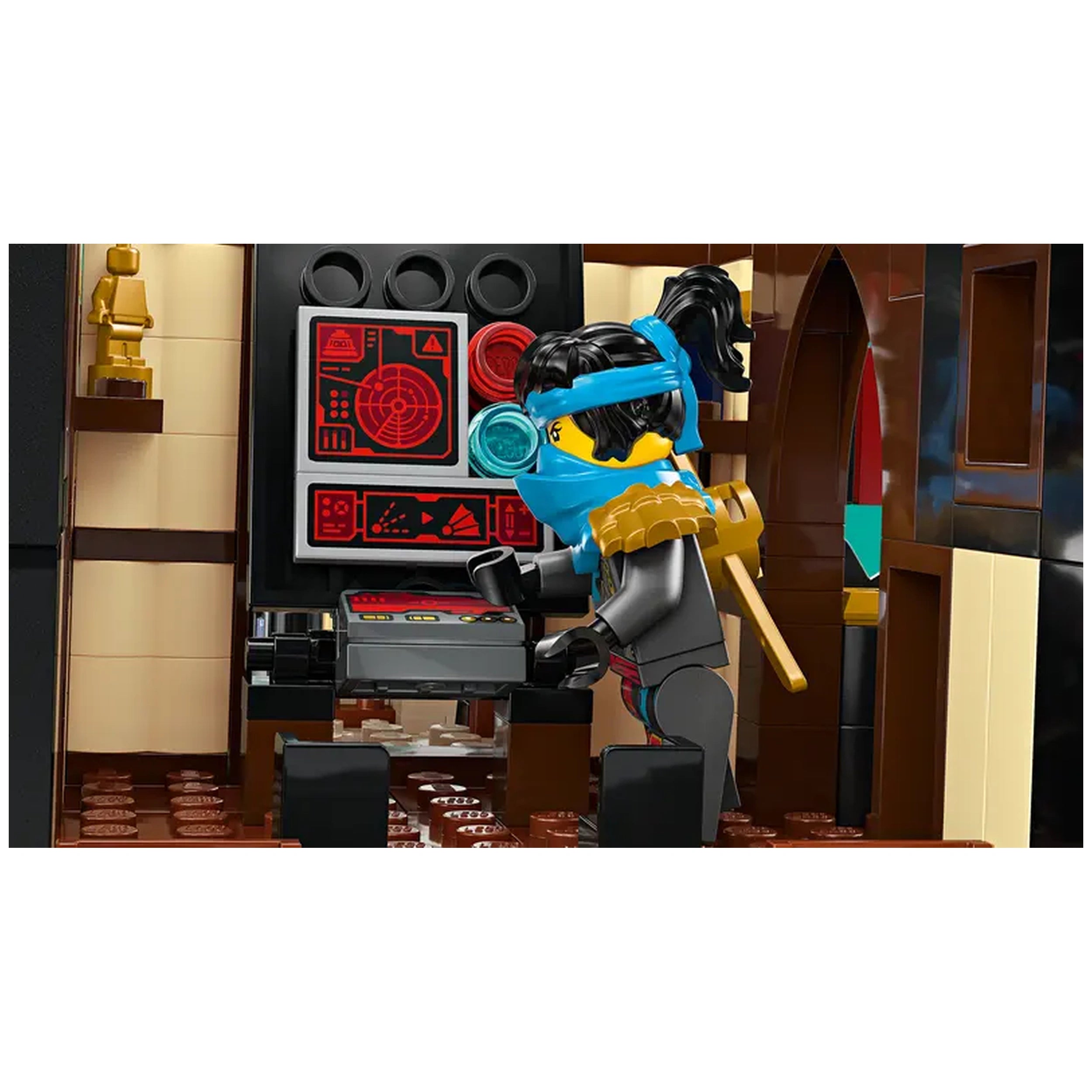 Interactive play is at the heart of The Temple Bounty. Fans can turn a gear to open and close the sails, enhancing the realism of their play experience. The removable roofs and floors provide access to the ship's interior, which features a sushi bar and a cleverly designed main cabin with a foldable table that reveals a hidden computer. This level of detail encourages imaginative storytelling, allowing fans to recreate thrilling scenes from season 3 of the NINJAGO Dragons Rising TV show.