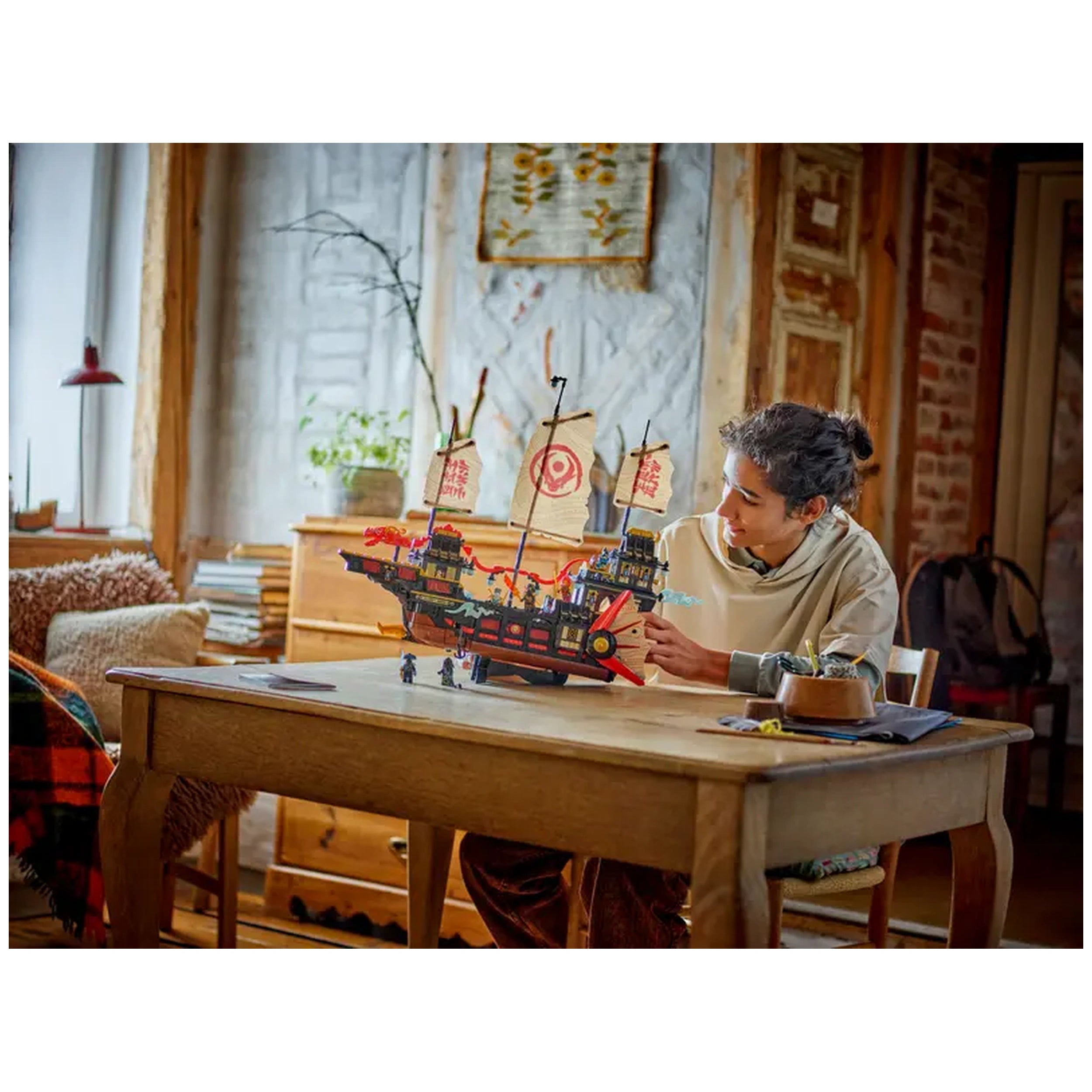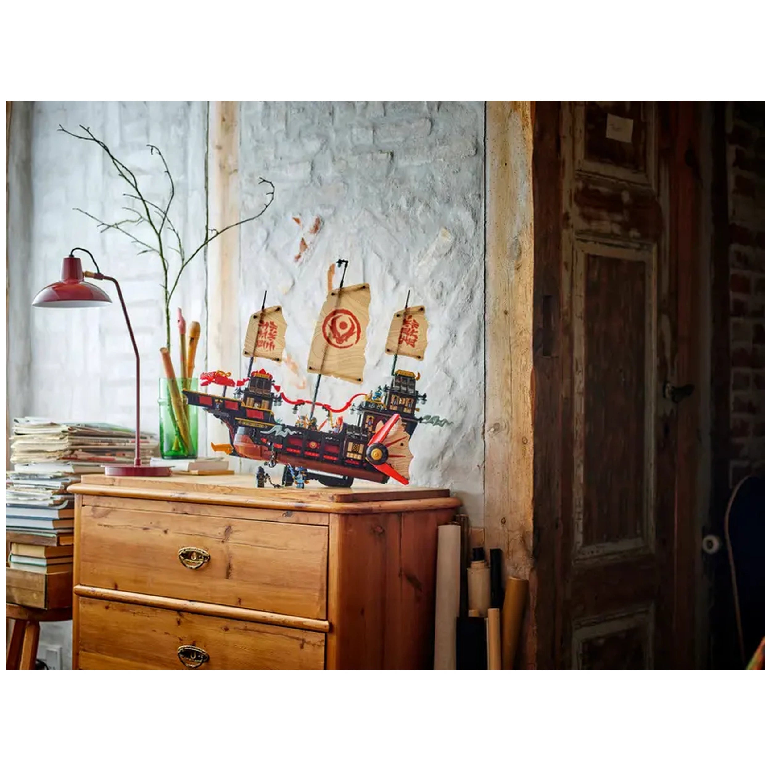 The Temple Bounty set boasts an impressive 2,387 pieces, allowing builders to engage in a rewarding construction experience. Once completed, this large boat model stands tall at over 19.5 inches (49 cm) high and stretches 22.5 inches (58 cm) long, making it a striking display piece for any shelf or bedside table. The set includes a dedicated display stand, ensuring that your hard work is showcased beautifully. This model not only serves as a playset but also as a stunning decorative item that reflects your passion for the NINJAGO saga.