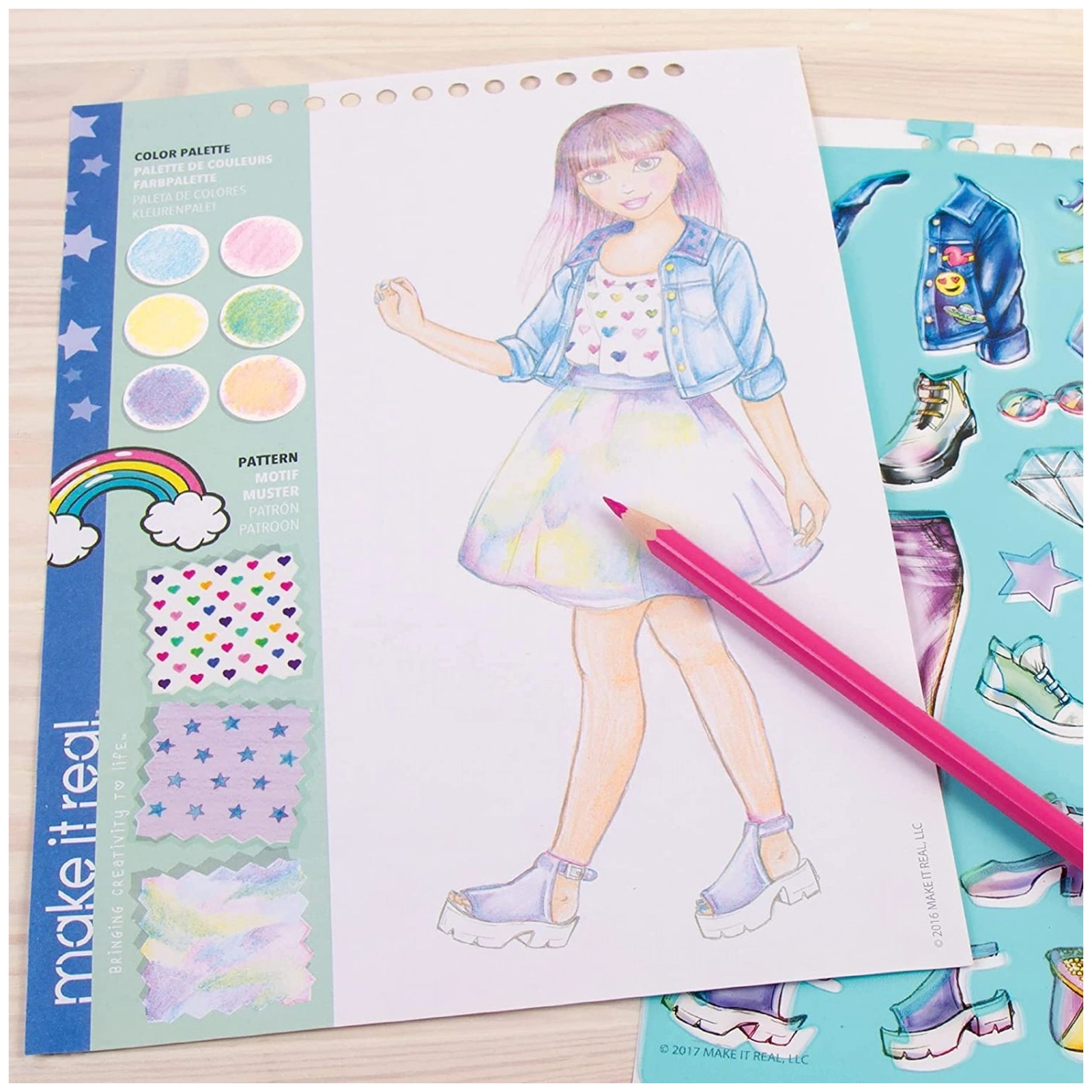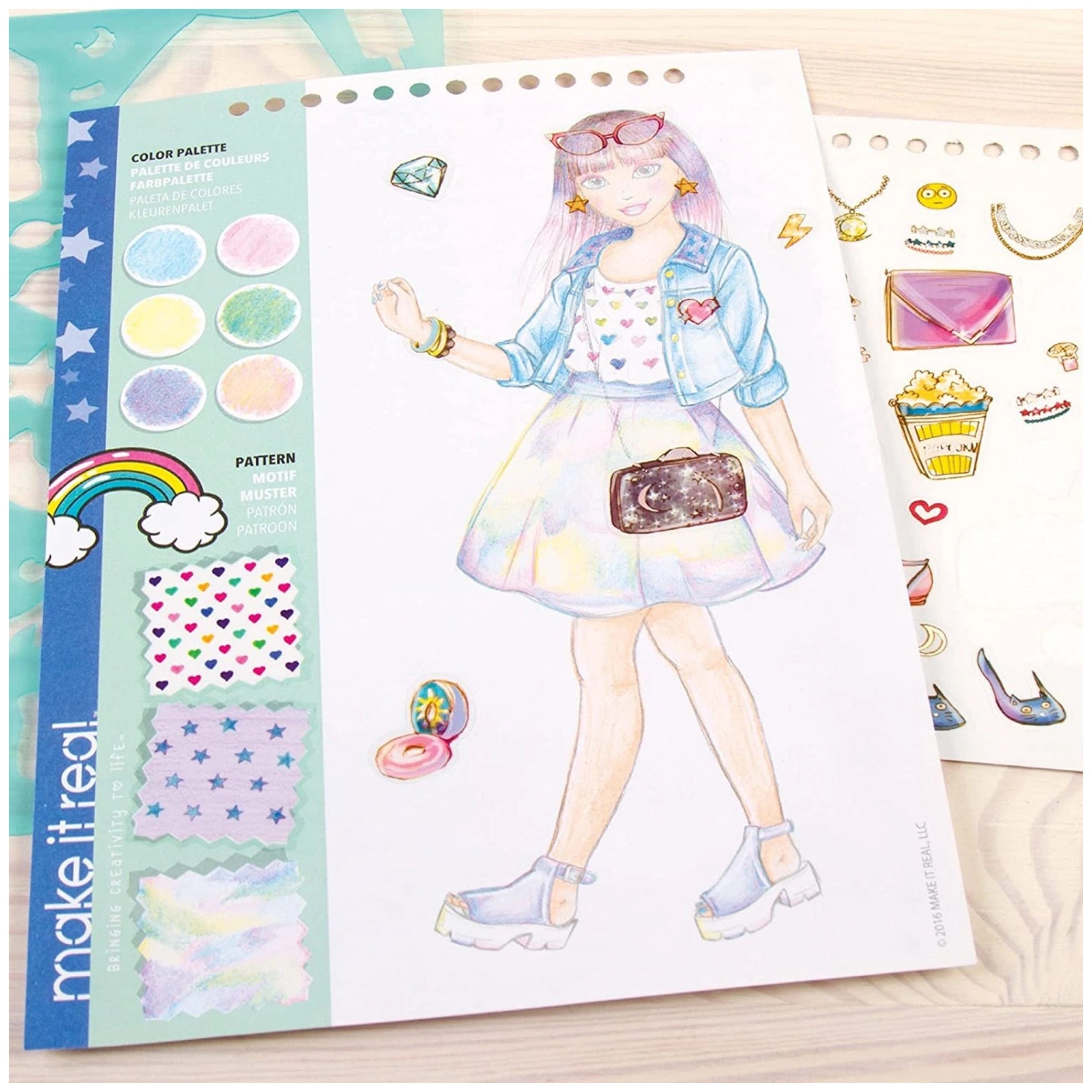 To enhance the creative experience, the sketchbook comes with a collection of puffy stickers, foil stickers, and regular adhesive stickers. These fun accessories allow young designers to embellish their sketches and add a personal touch to their creations. The combination of these elements encourages imaginative play and helps build confidence in their artistic abilities.