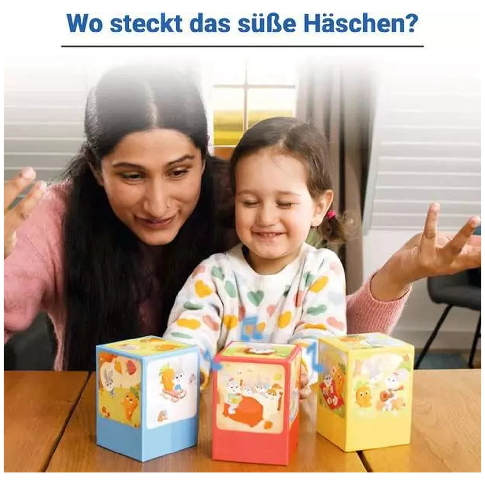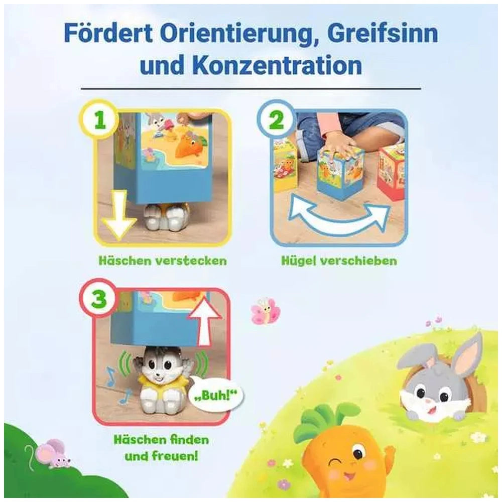 In this captivating game, children embark on a playful adventure to discover where the electronic bunny is hiding. The game features three beautifully illustrated story hills, each telling a part of the Lotti Karotti tale. As the hills can be rearranged, the challenge of remembering the bunny's location becomes even more exciting. When players lift the correct hill, they are rewarded with the bunny's cheerful laugh and a playful "Buuh!" This interactive element not only enhances the gameplay but also keeps little ones engaged and entertained.