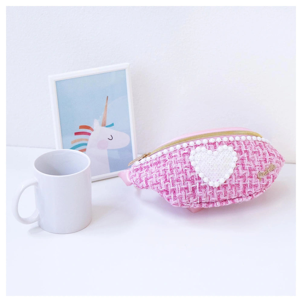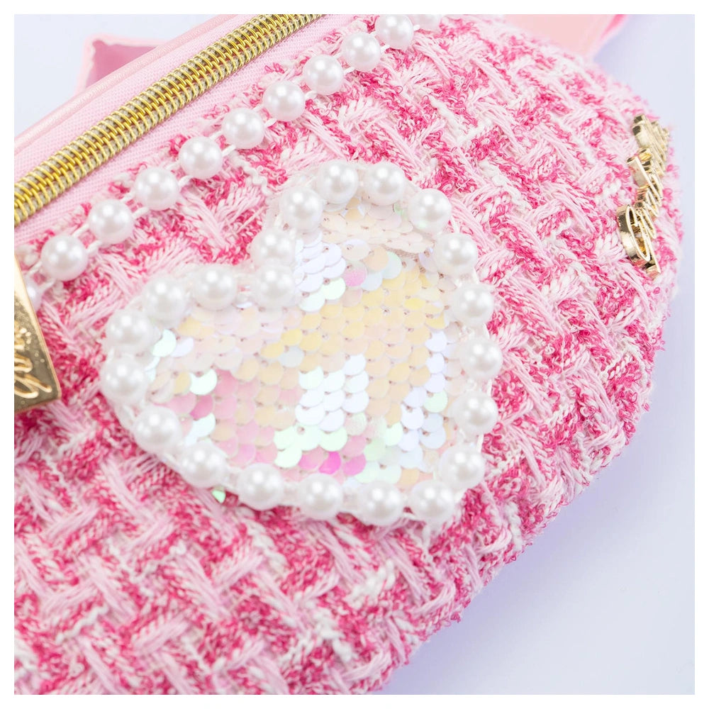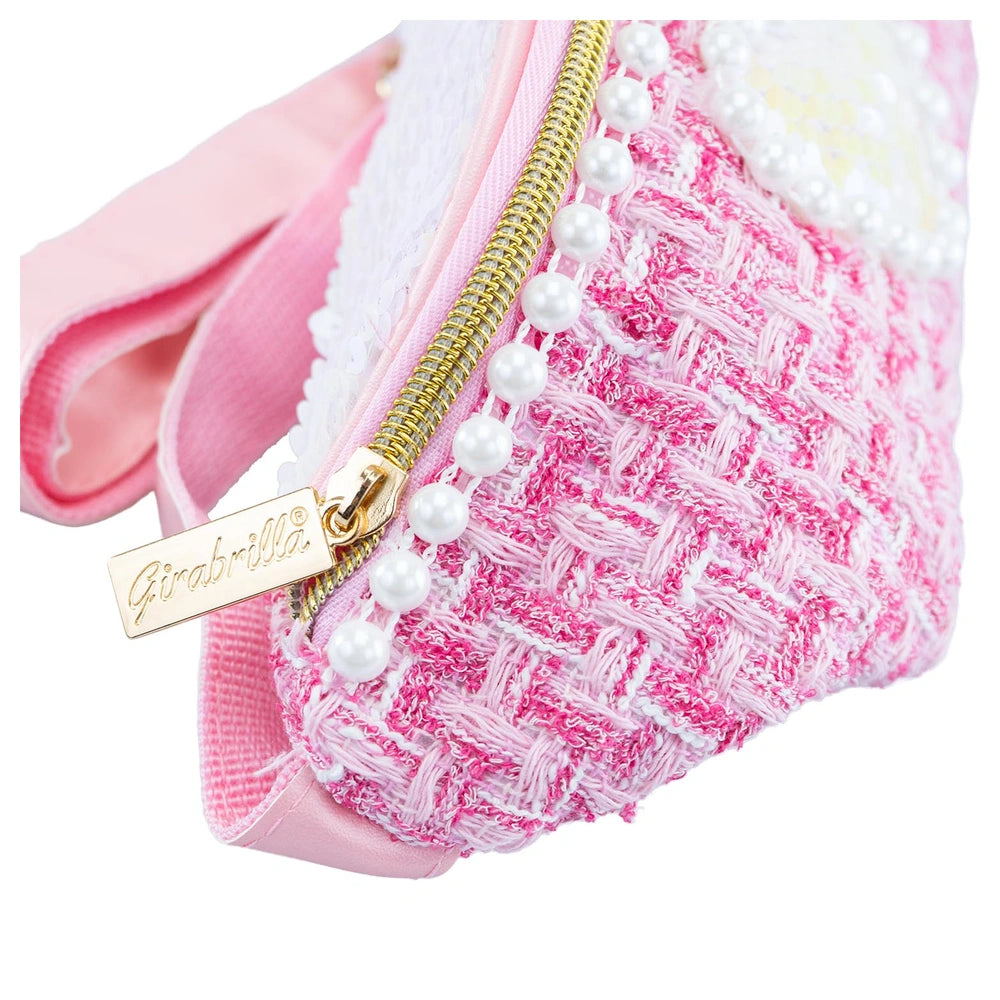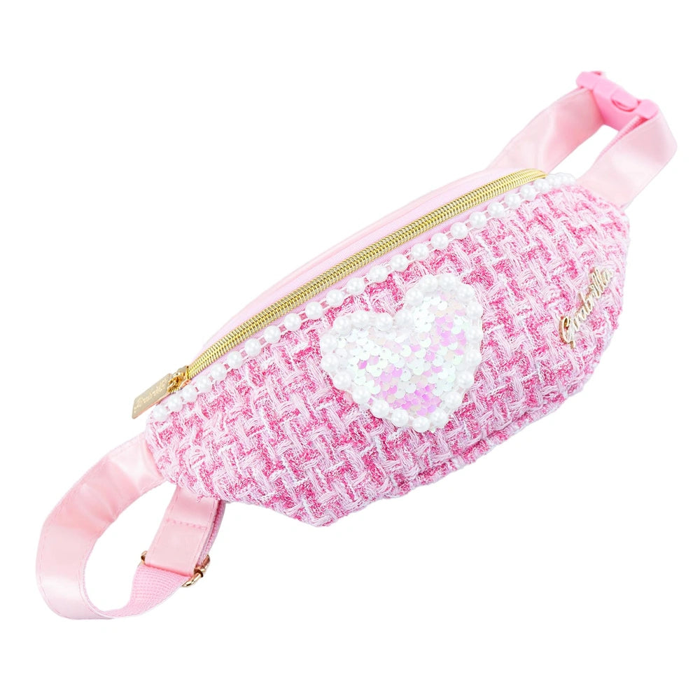 Nice presents the Girabrilla Tweed Waist Bag, a stylish accessory designed for children aged 5 and up, within the category of School & Stationary. This waist bag combines practicality with a chic aesthetic, making it an essential item for young fashion enthusiasts. Its unique design features a blend of shimmering reversible sequins and classic tweed fabric, ensuring that it stands out while providing functionality.