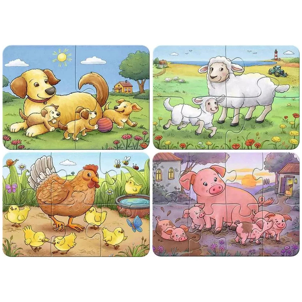 Introducing the Ravensburger - My First Puzzles Pieces 2-4-6-8 Kleine Bauernhoftiere, an engaging and educational puzzle set designed specifically for toddlers. This delightful collection features puzzles with increasing piece counts of two, four, six, and eight, making it the perfect introduction to the world of puzzles for young children. Each puzzle is crafted with large, easy-to-handle pieces that are ideal for little hands, ensuring that your child can enjoy the satisfaction of completing a puzzle independently.
