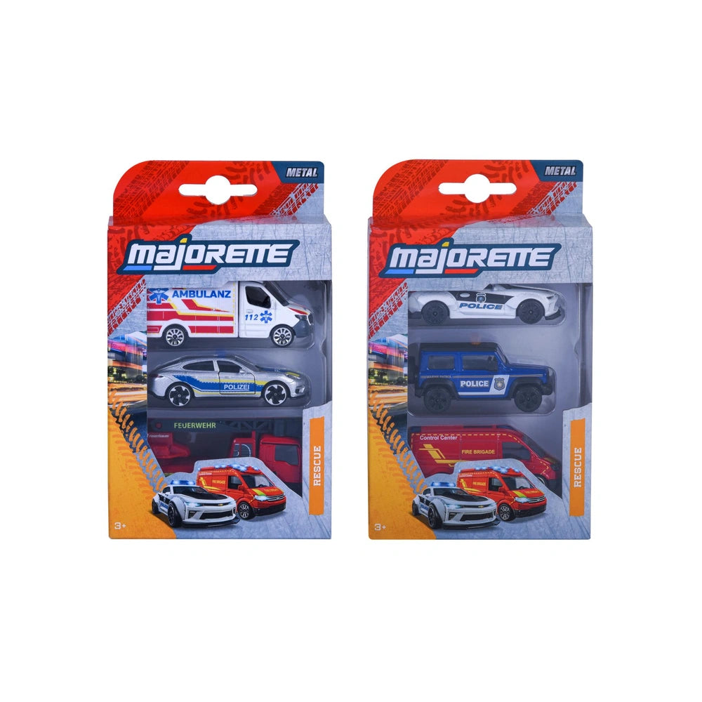 The Majorette Rescue Premium 3-Piece Set offers a thrilling experience for children, combining fun and educational play. Each vehicle is crafted from durable metal, ensuring longevity during playtime. The set includes a random selection of three different models from two variants, providing an element of surprise with every order. This robust car set is perfect for children who enjoy role-playing scenarios involving emergency services.