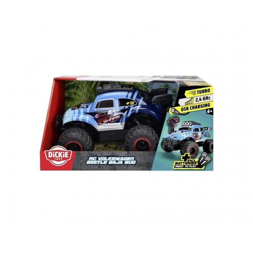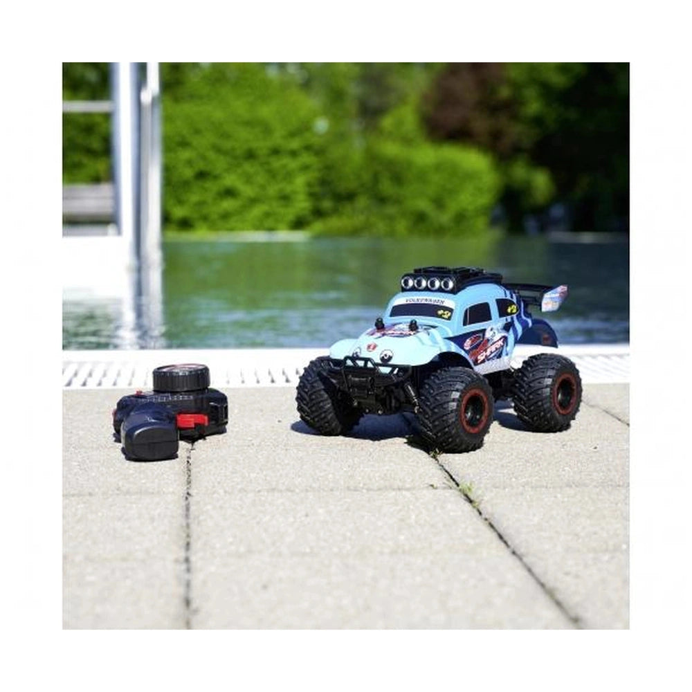 Introducing the Dickie Remote Controlled Volkswagen Beetle Baja Bug RTR Play Vehicle, a thrilling toy designed to ignite the imaginations of young adventurers. This officially licensed RC car combines the classic charm of the iconic Volkswagen Beetle with the rugged capabilities of an off-road monster vehicle. Perfectly suited for children aged six and above, this remote-controlled car promises hours of excitement and fun, whether indoors or outdoors.