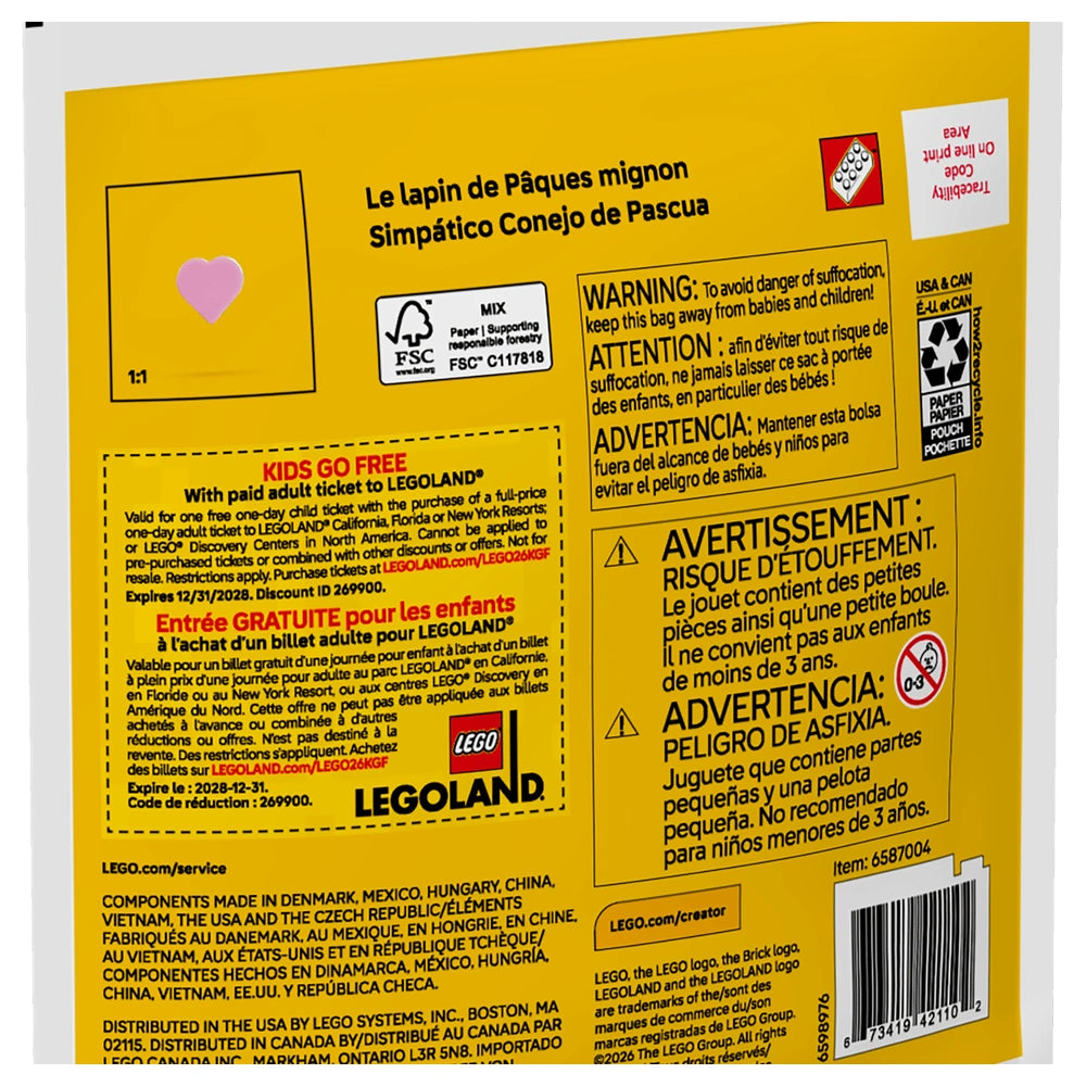Don’t miss out on the chance to bring home the LEGO Creator Cute Easter Bunny Construction Set (30716). This enchanting set promises hours of fun and creativity, making it an ideal gift for birthdays, Easter, or any special occasion. Encourage your child's imagination and building skills today—order now and let the Easter adventures begin!
