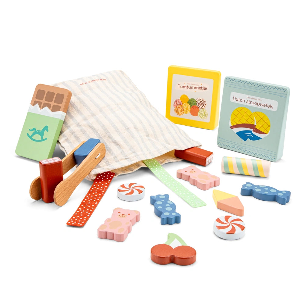 • Charming Variety of Treats: Includes 16 different wooden candy pieces such as gummy bears, a chocolate bar, and Dutch stroopwafels, providing endless imaginative play opportunities.