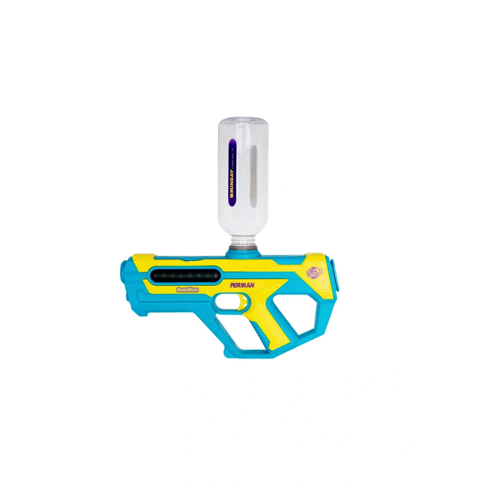Part of the innovative Splashmatic line, the Persian (Model 42685) is a compact yet powerful electric water gun. It features a striking turquoise and yellow high-visibility design and is constructed from durable, non-toxic ABS plastic for long-lasting outdoor use. The blaster stands out with its integrated LED light system, which illuminates the barrel and sides, allowing the action to continue well into the evening. Its ergonomic grip and lightweight build make it easy for children to handle during fast-paced play.