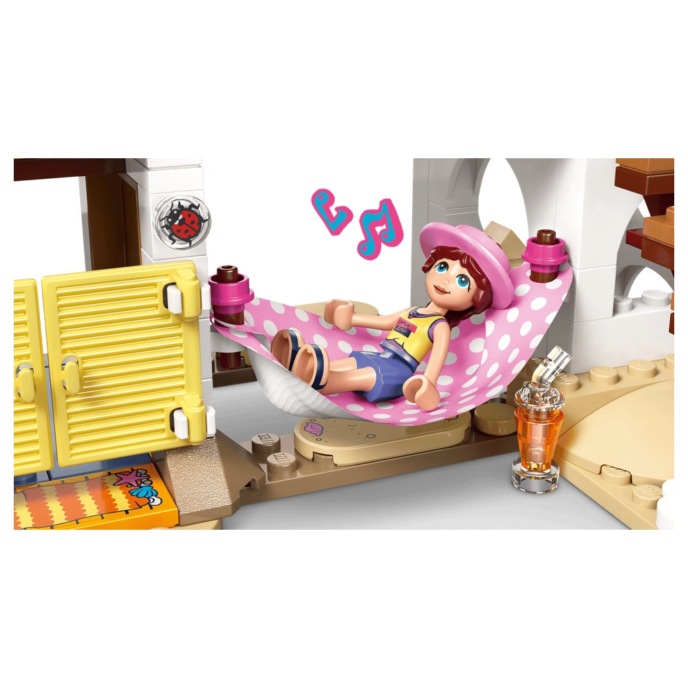 This construction set includes three minidolls—Leo, Liann, and Paisley—who are ready to embark on exciting adventures. The addition of two playful seal figures enhances the imaginative play experience, allowing children to create their own vacation stories. With a variety of fun accessories such as a surfboard, kayak, hammock, life vest, walkie-talkies, binoculars, sunscreen, and snacks, the possibilities for creative storytelling are endless.