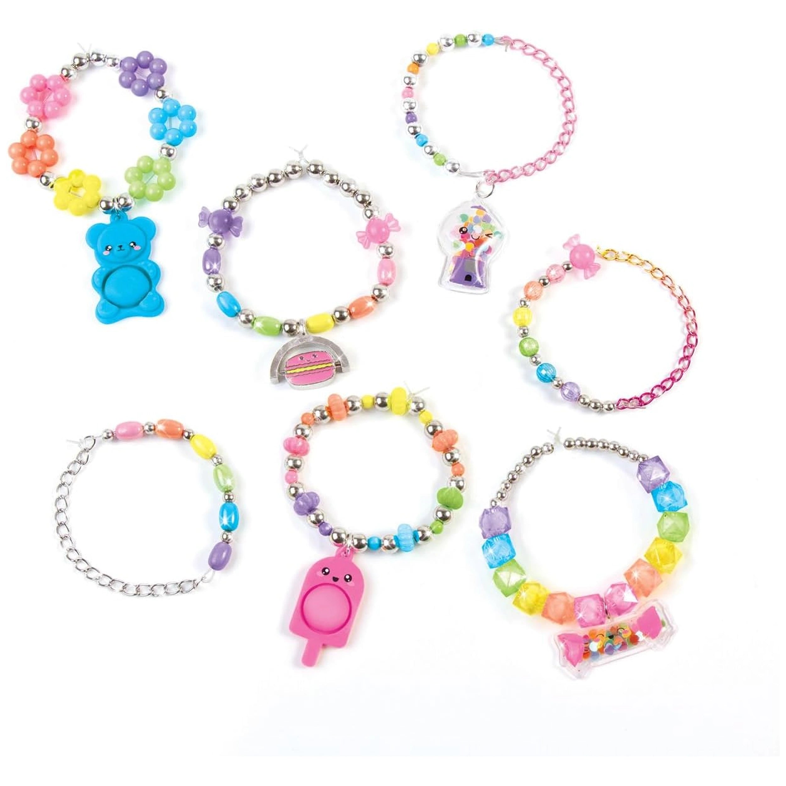 Introducing the FUNLAB MAKE IT REAL - Pop Shake Twist Bracelet Set, a vibrant and engaging arts and crafts kit designed to inspire creativity in children. This unique set allows young creators to craft up to seven trendy bracelets adorned with cool fidget pendants, perfect for plopping, twisting, or shaking. Whether worn personally or gifted to friends, these bracelets serve as a fun expression of individuality and style.