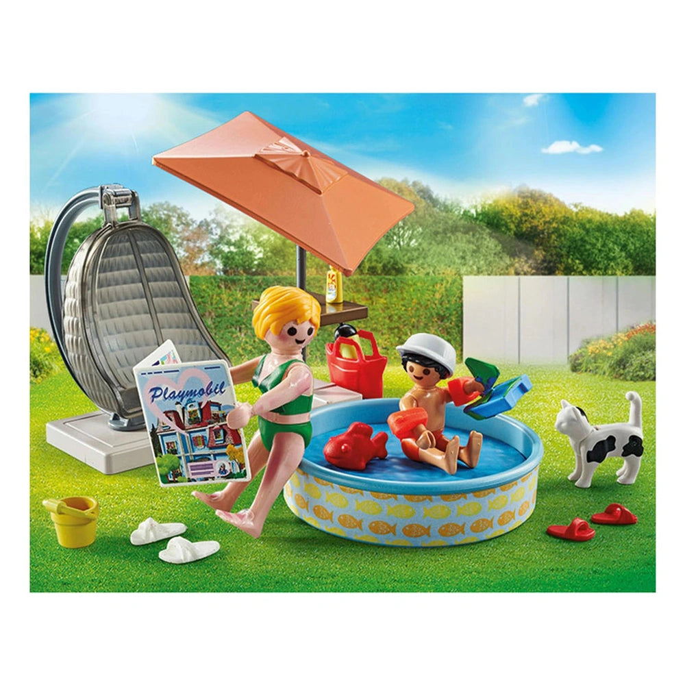 Introducing the Playmobil My Life Splashing Fun At Home - 71476, a delightful playset designed to bring the joy of summer fun right into your living room. This engaging set captures the essence of a perfect sunny day, where children can immerse themselves in imaginative play while learning about safety and care. With its vibrant colors and intricate details, this playset is sure to captivate the hearts of young adventurers and their parents alike.