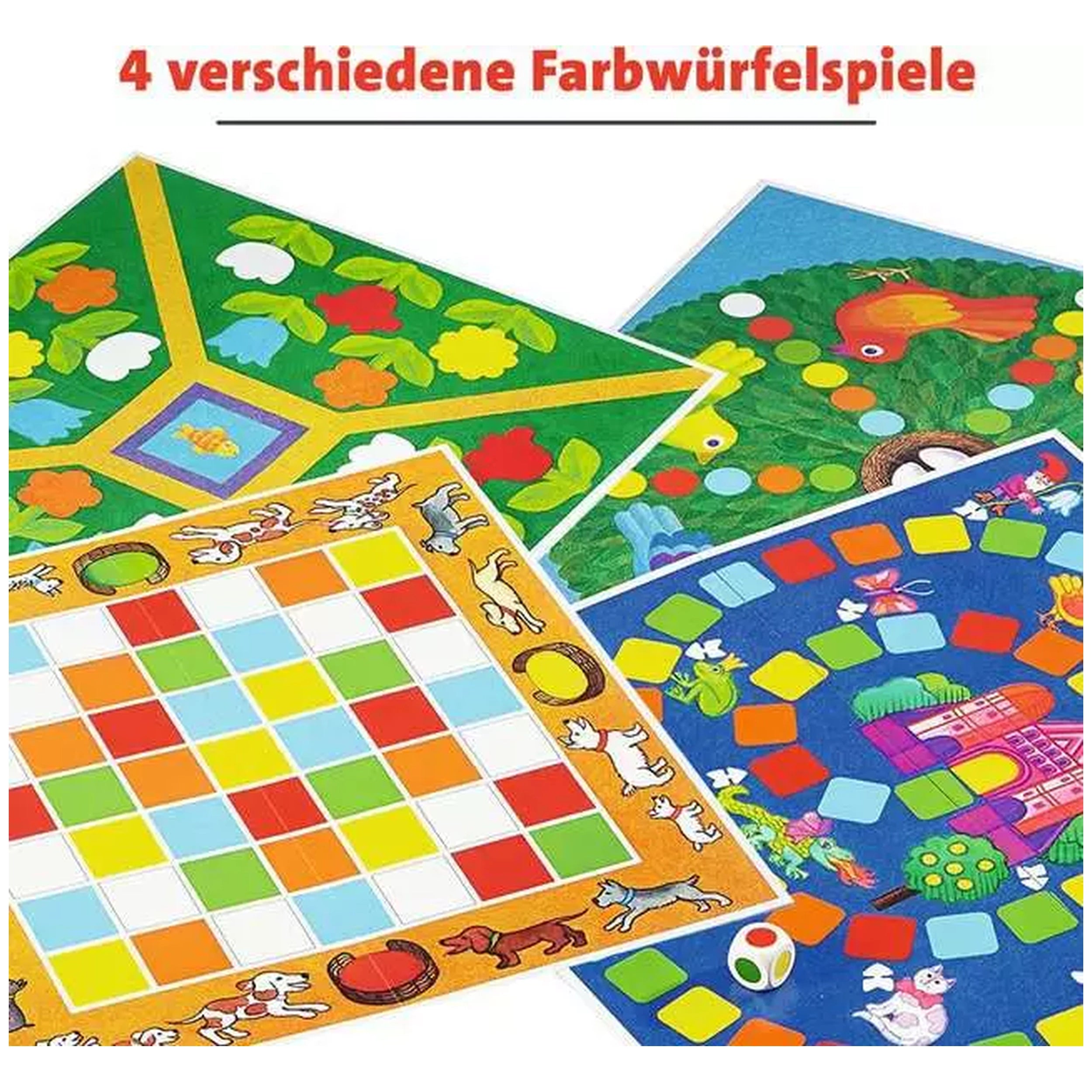 The first game, "Vogelspiel," invites players to roll the dice and advance based on the colors they roll, racing to be the first to reach the nest. This game not only entertains but also encourages children to interact with one another, teaching them the importance of following rules and taking turns. The excitement of rolling the dice and moving forward creates a lively atmosphere that keeps children engaged and eager to play again.