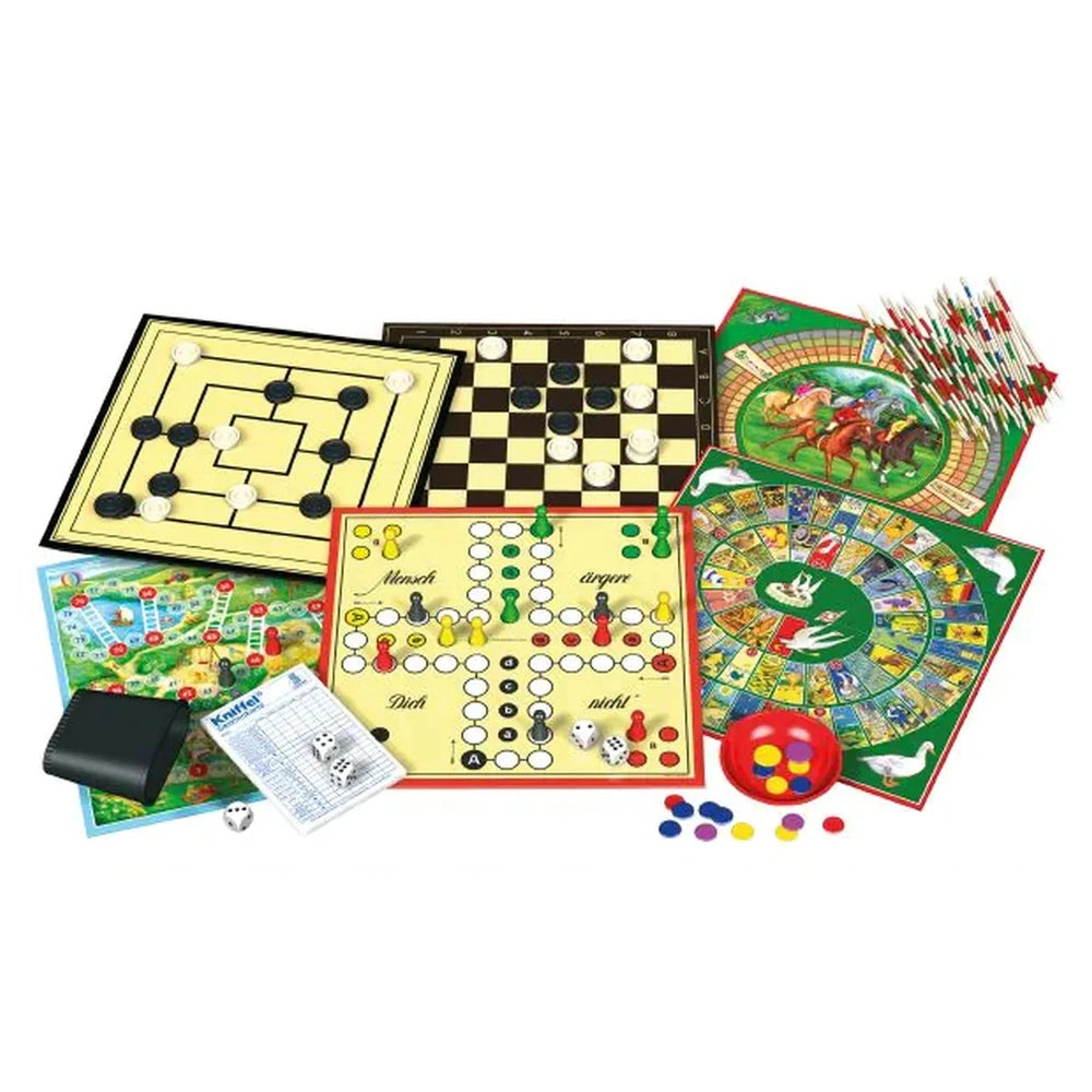 Introducing the Schmidt Spiele Game Collection, a treasure trove of entertainment that brings together a diverse array of classic games, perfect for family gatherings, game nights, or simply enjoying quality time with friends. This comprehensive collection features timeless favorites such as MENSCH ÄRGERE DICH NICHT®, KNIFFEL®, Mühle, Dame, Flohspiel, and Mikado, alongside an impressive 94 additional games, ensuring that boredom is never an option.