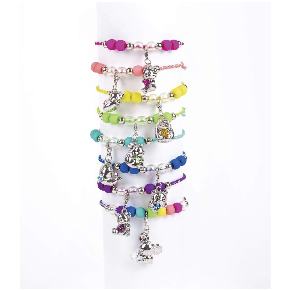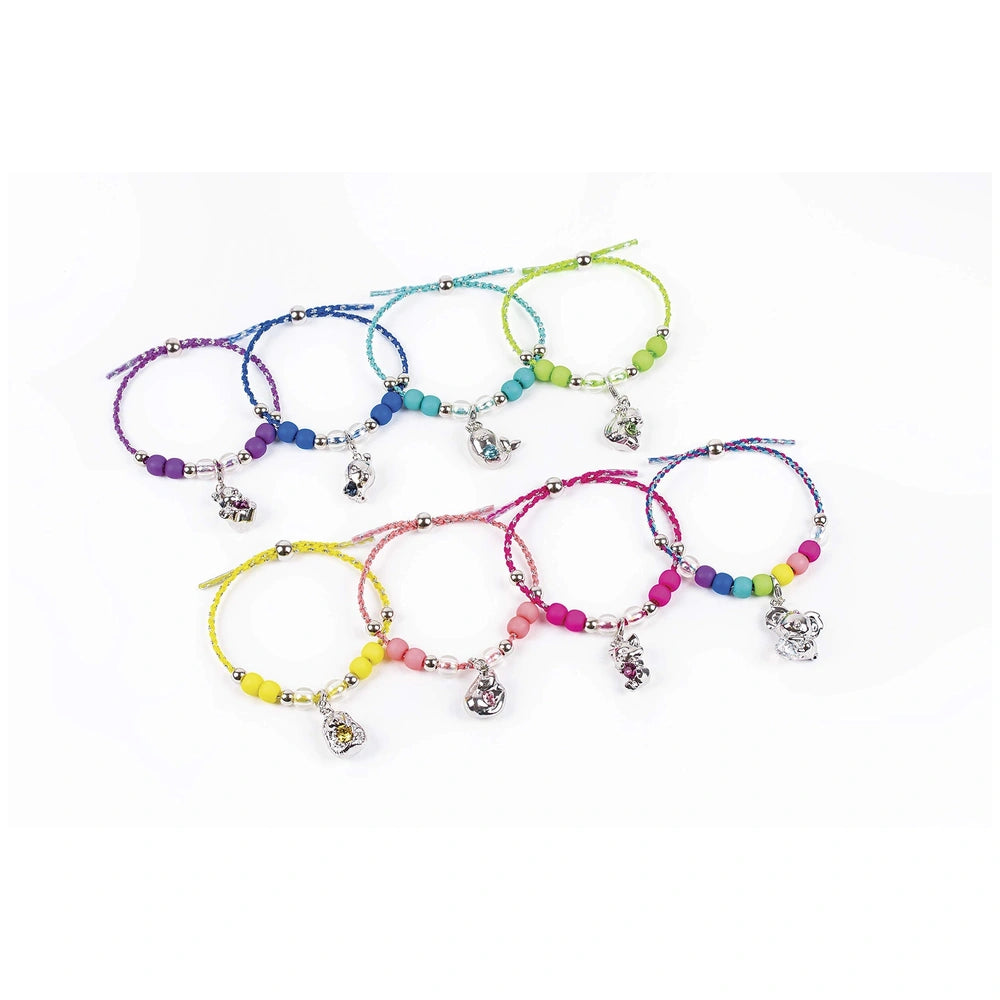 Introducing the Make It Real - Crystal Secrets Bracelets with Swarovski, a delightful DIY playset designed to inspire creativity and imagination in children. This enchanting kit allows young creators to craft their own stunning bracelets, each adorned with a unique animal-shaped pendant featuring a genuine Swarovski crystal. Perfect for children who love to express themselves through jewelry, this product combines fun and artistry in a captivating way.