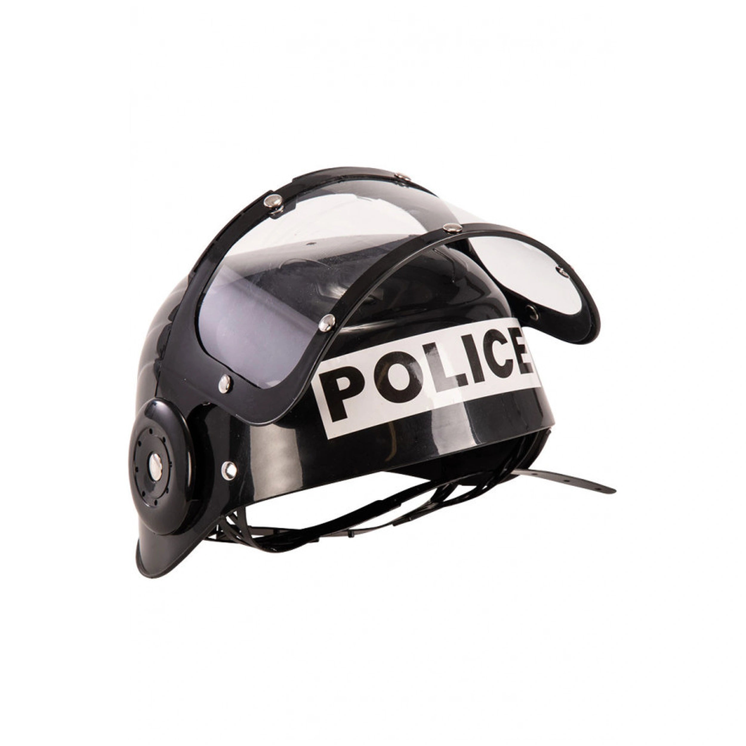 Crafted from durable black plastic, the Carnival Toys Police Helmet is built to withstand the rigors of active play. Its sturdy construction ensures that it can handle the excitement of pretend police chases and rescue missions. The helmet features a clear visor that not only adds to the authentic look but also provides a safe and unobstructed view for your child during their adventures. The front of the helmet is emblazoned with the word "POLICE," making it clear that your little one is ready to uphold the law and protect their community.