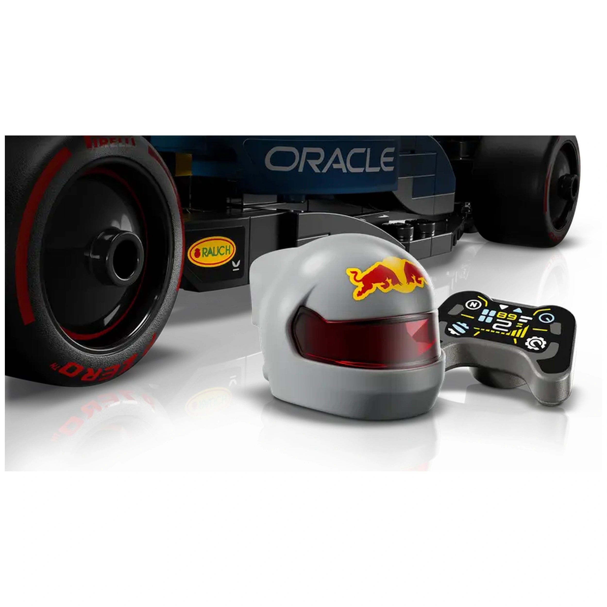 Included in the set is a highly detailed F1 driver minifigure, dressed in a Red Bull outfit complete with a winged helmet. This figure can be placed inside the cockpit, adding an extra layer of authenticity to your model. The attention to detail extends to the sponsor stickers, which further enhance the realism of the build. This set is perfect for those who appreciate the finer points of design and engineering in the world of Formula 1 racing.