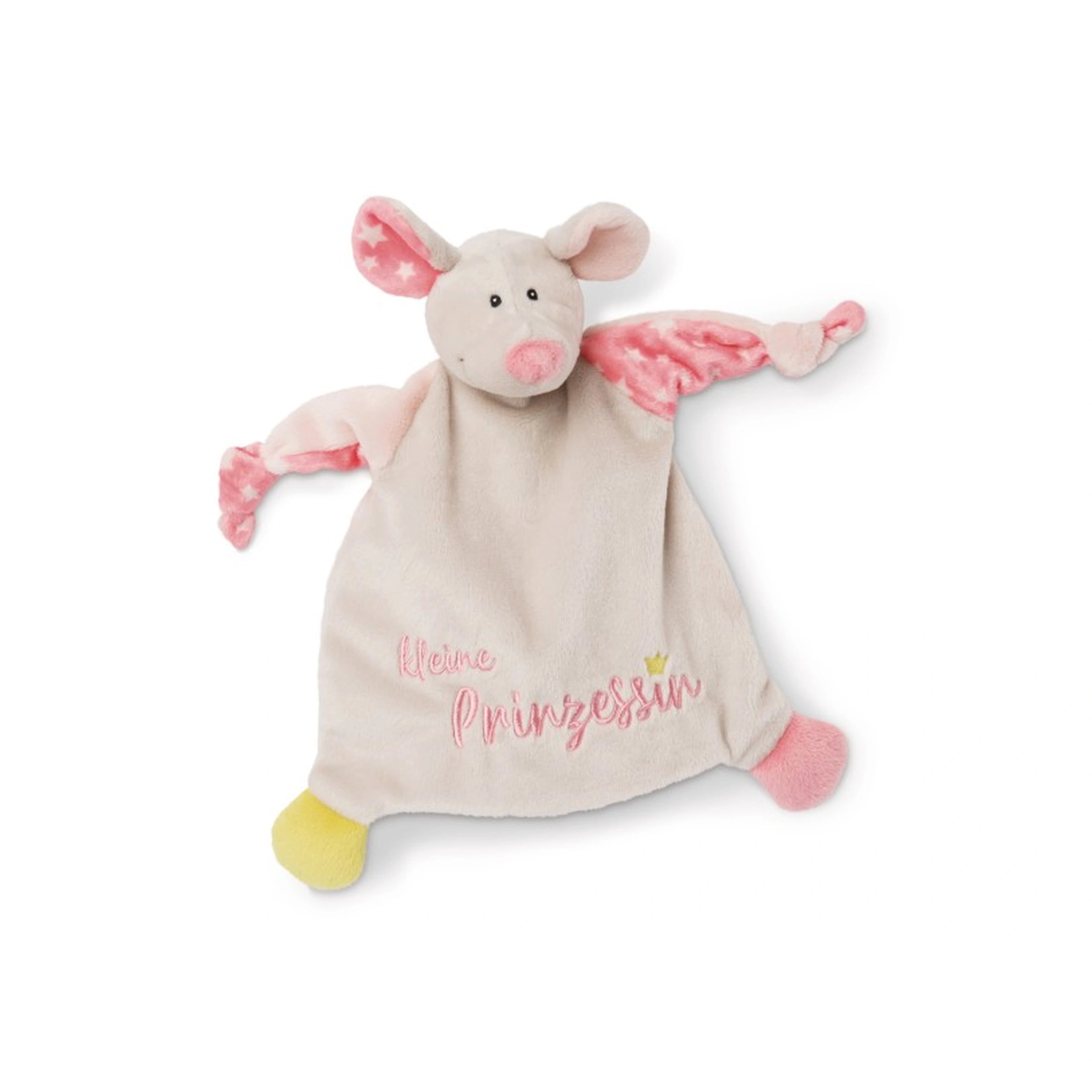 Introducing the NICI - My First NICI - Comforter Mouse - Kleine Prinzessin, a delightful companion designed specifically for newborns. This enchanting comforter features a charming mouse design adorned with the whimsical Kleine Prinzessin embroidery, making it an ideal gift for any little princess. Crafted with the utmost attention to detail, this comforter not only serves as a cuddly toy but also as a comforting presence for infants during their early days.