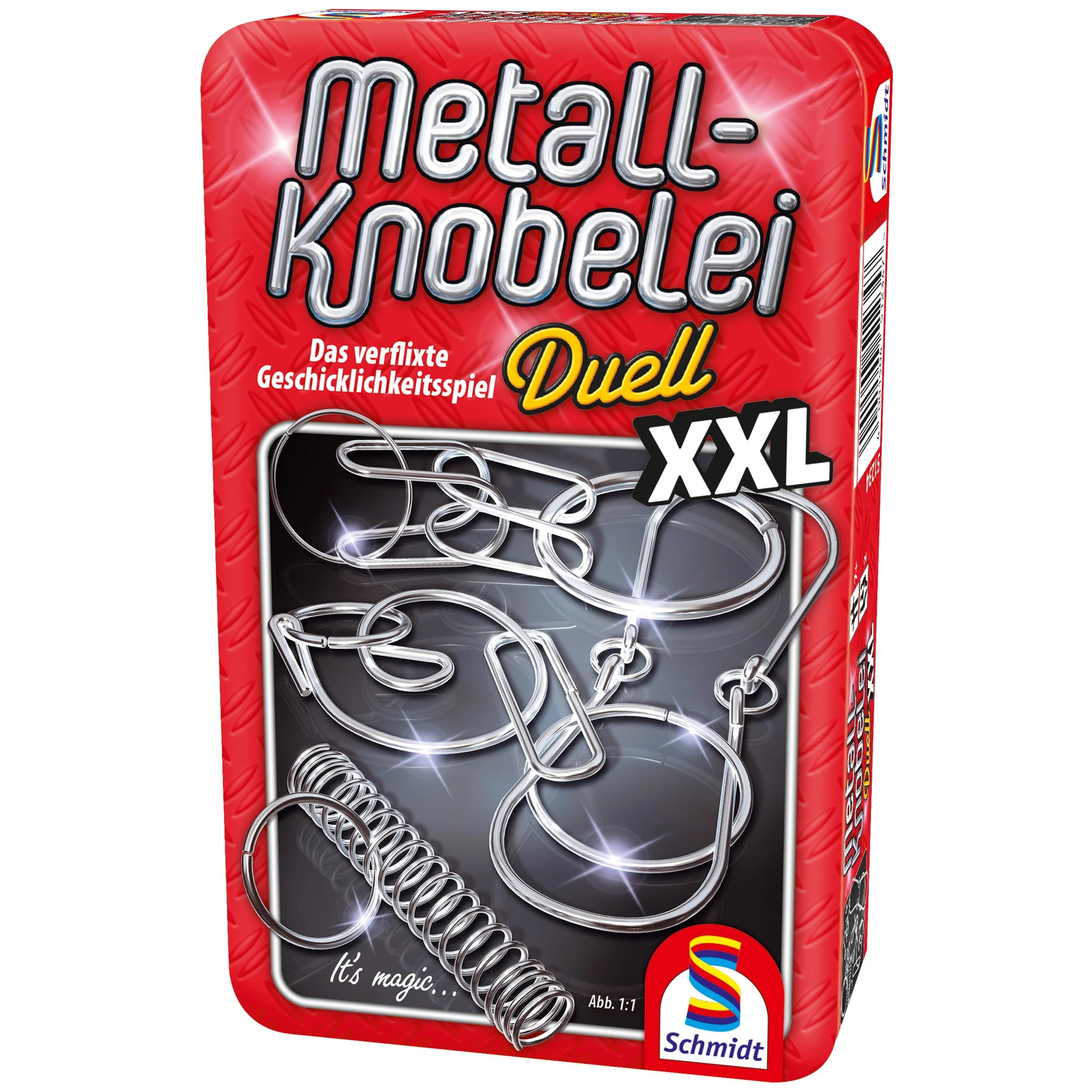 Embrace the challenge and unleash your inner puzzle master with the "Metall-Knobelei Duell XXL" from Schmidt Spiele. Immerse yourself in the captivating world of metal brain teasers and put your skills to the test. Add this exceptional puzzle set to your collection today and experience the joy of unraveling complex metal puzzles. Don’t miss your chance to embark on a rewarding mental adventure—order your "Metall-Knobelei Duell XXL" now and let the puzzling excitement begin!