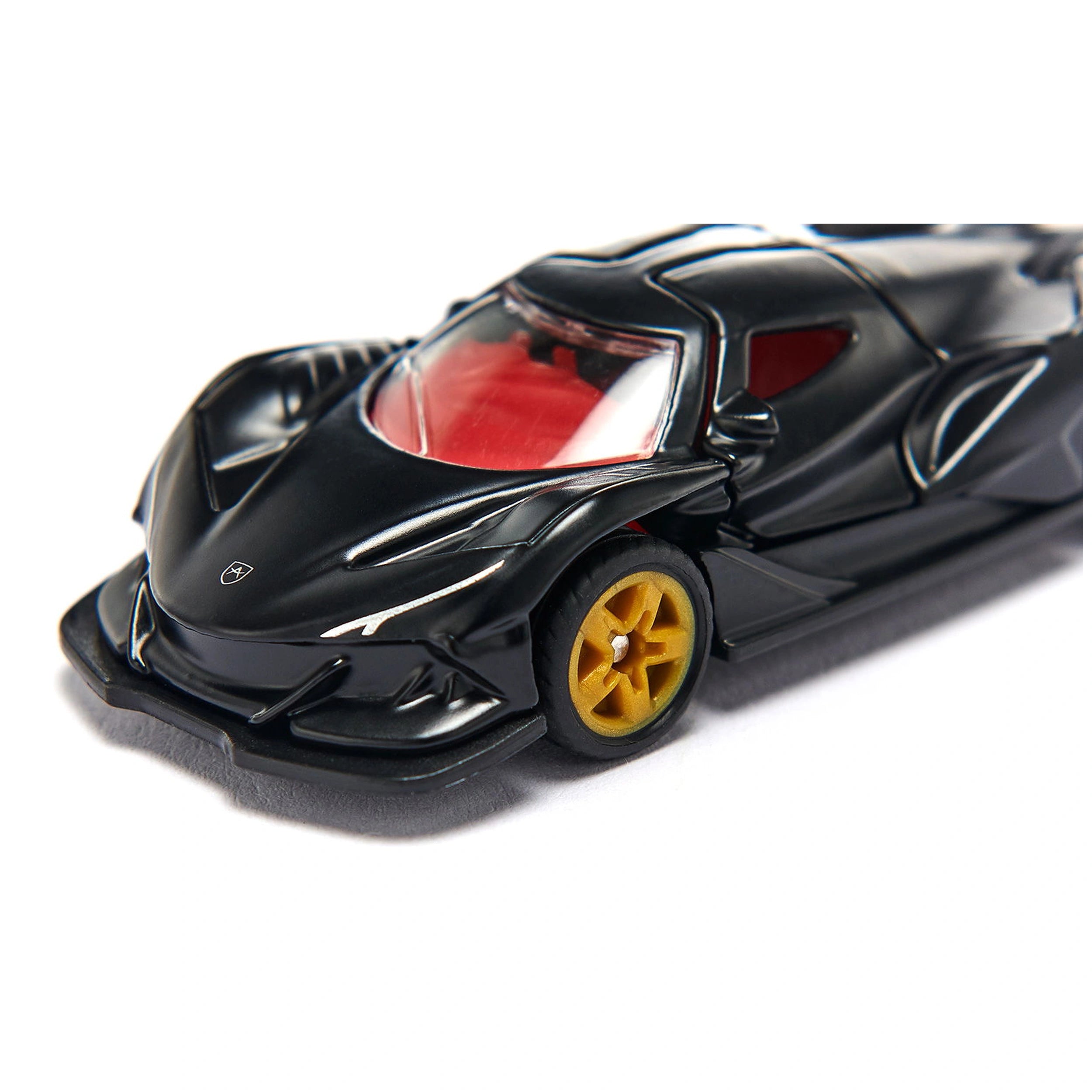 The design of the Apollo IE is nothing short of breathtaking. Its matte black finish gives it an aggressive and futuristic look, while the sharply defined contours and aerodynamic lines enhance its performance-oriented aesthetic. The large rear spoiler, complemented by a prominent fin, not only adds to the car's striking appearance but also serves a functional purpose in improving downforce at high speeds. This attention to detail is reflected in the Siku model, making it a must-have for anyone who appreciates automotive excellence.