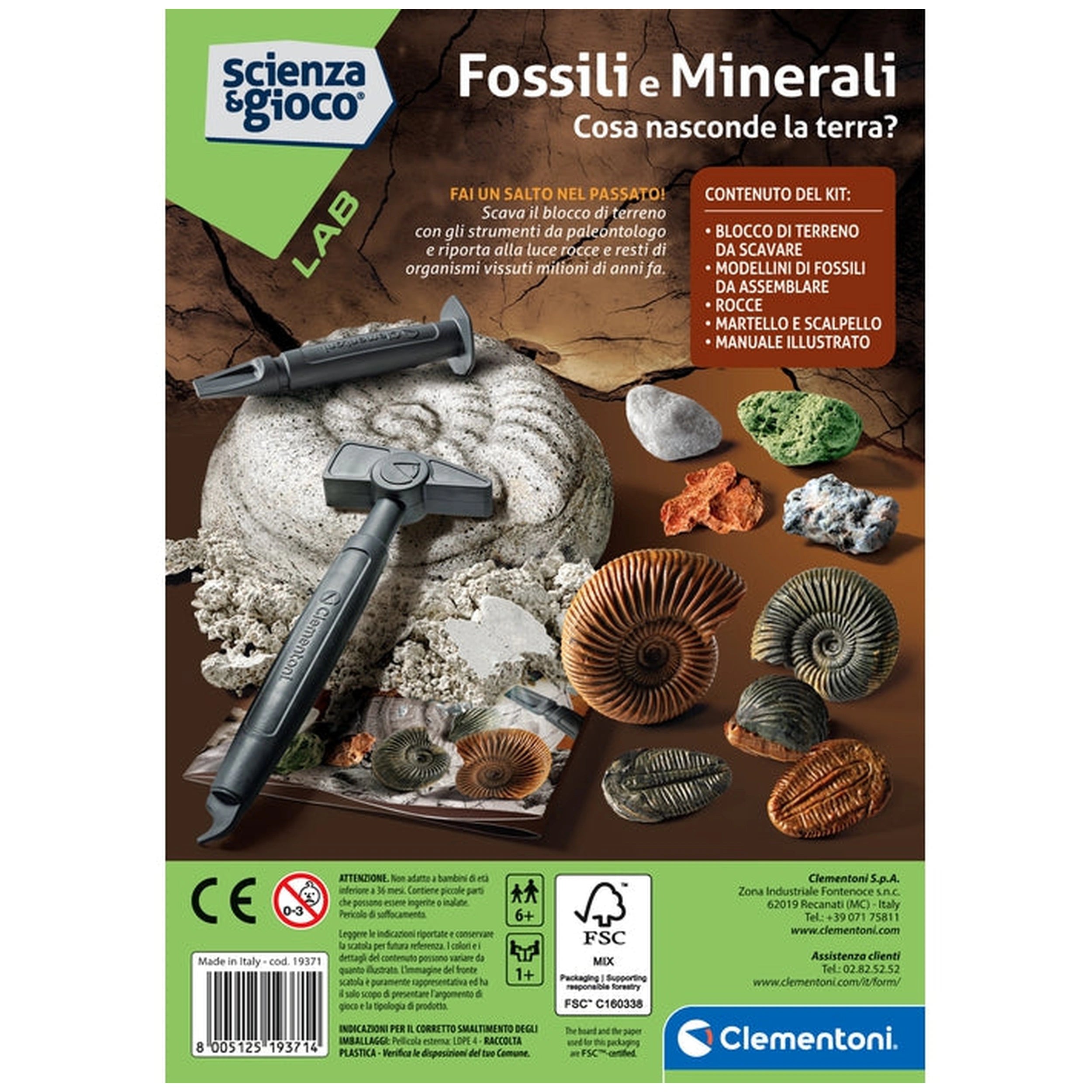 Introducing the Clementoni Scienza E Gioco Lab - Fossils And Minerals Toy Playsets, a captivating scientific kit designed to immerse children in the fascinating world of paleontology. This engaging playset allows young explorers to dig deep into the earth, uncovering a treasure trove of fossils and minerals. Perfectly crafted for children aged six and above, this kit not only entertains but also educates, making it an ideal choice for budding scientists eager to learn about the ancient past.