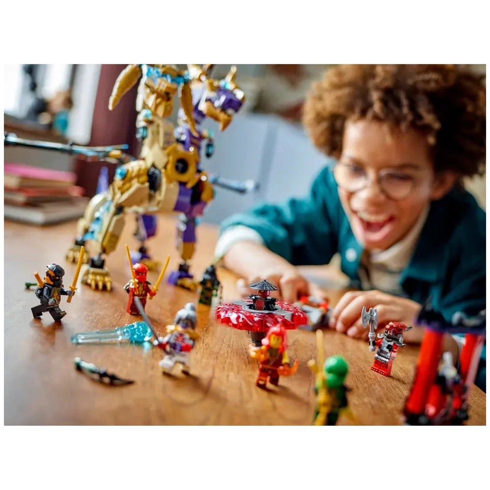 The LEGO® NINJAGO® Arc Dragon of Focus set comes complete with eight minifigures, ensuring that kids have everything they need to create epic confrontations between heroes and villains. The set features beloved ninja warriors such as Lloyd, Cole, Wyldfyre, and Kai, alongside their ally Pixal. On the opposing side, children will encounter formidable foes like Drix, Zarkt, and a Dragonian Warrior, each equipped with their own unique weapons. This diverse cast of characters allows for endless role-playing possibilities, encouraging teamwork and strategic thinking.