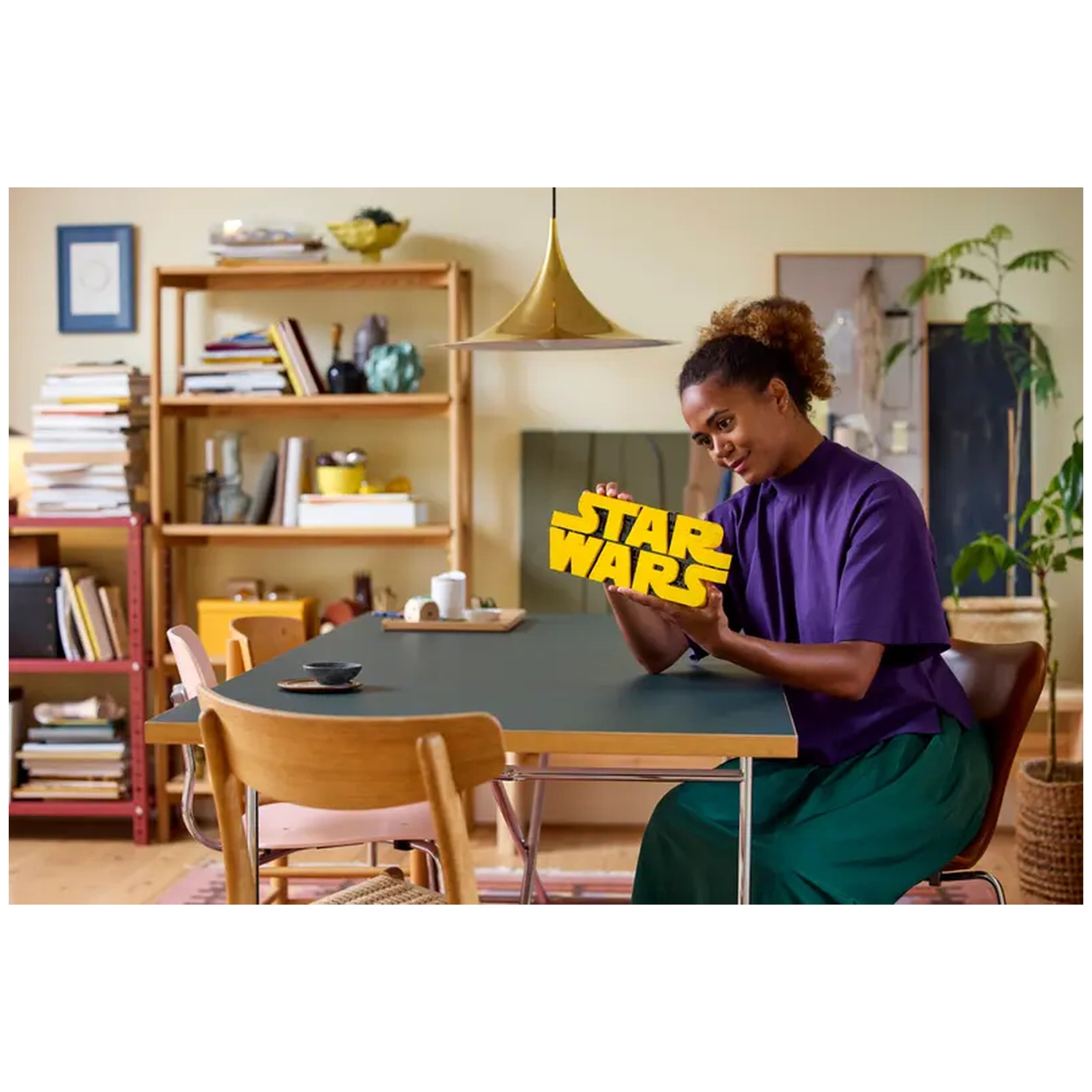 The LEGO® Brick-Built Star Wars™ Logo is not just a simple display piece; it is a testament to the artistry and craftsmanship that LEGO is known for. With 700 pieces, this construction set allows you to capture the smooth contours of each yellow letter while incorporating classic LEGO greebling details in the black areas between them. As you build, you will discover a delightful surprise hidden within the 'T' of Star Wars, adding an extra layer of excitement to your creative journey. This attention to detail makes the model not only visually striking but also a conversation starter for any Star Wars enthusiast.