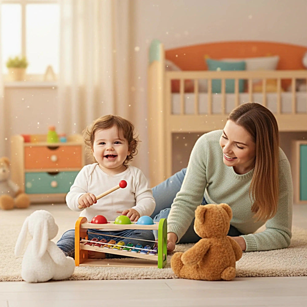 Don't miss the opportunity to enrich your child's playtime with the Eichhorn Hammer Bench with Xylophone. This engaging toy not only provides hours of fun but also lays the foundation for essential skills that will benefit them in the future. Order yours today and watch as your little one hammers, rolls, and creates beautiful music!