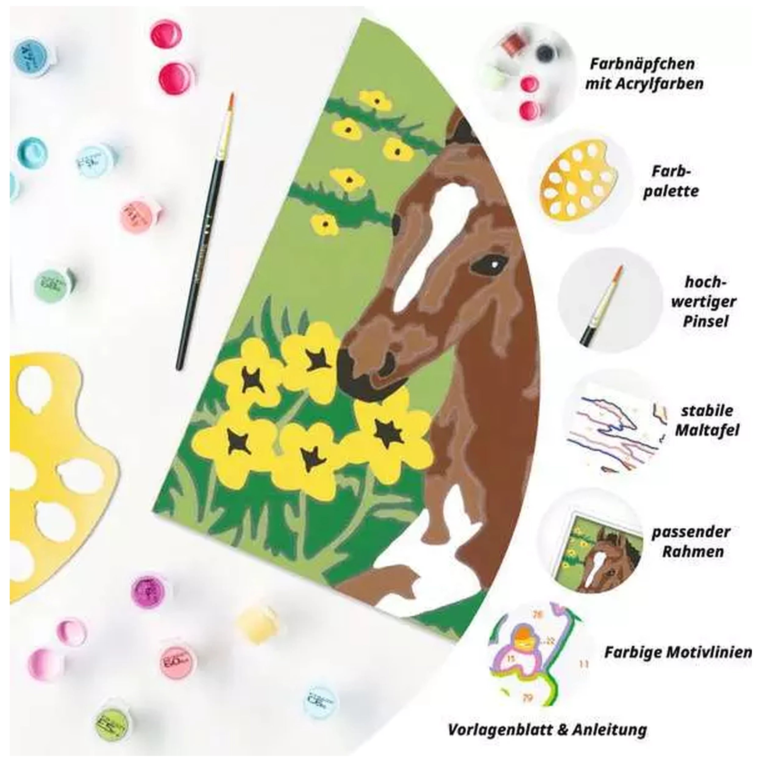 Introducing the Ravensburger Foal Arts & Crafts Set, a delightful and engaging painting kit designed specifically for young artists aged 7 and up. This innovative product combines creativity with skill development, making it an ideal gift for children who enjoy expressing themselves through art. With its vibrant color lines and user-friendly design, this painting set ensures that kids can easily recognize the foal motif and the corresponding colors, enhancing their overall painting experience.