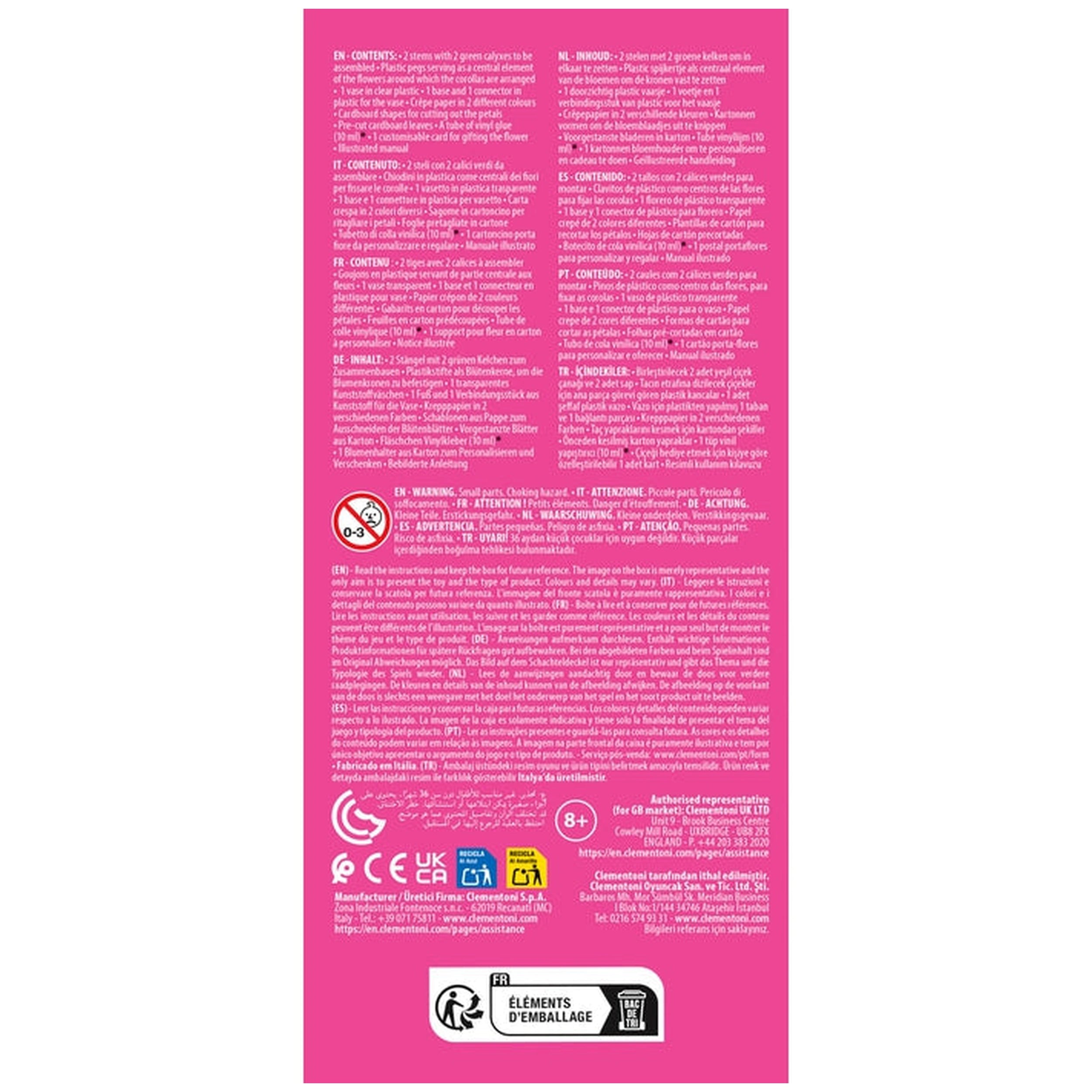 The Clementoni Create your Flowers kit is designed and developed in Italy, ensuring high-quality materials and craftsmanship. Each component is made with care, providing a safe and enjoyable crafting experience for children. The kit's compact size makes it easy to store and transport, allowing for creativity on the go, whether at home or during travel.