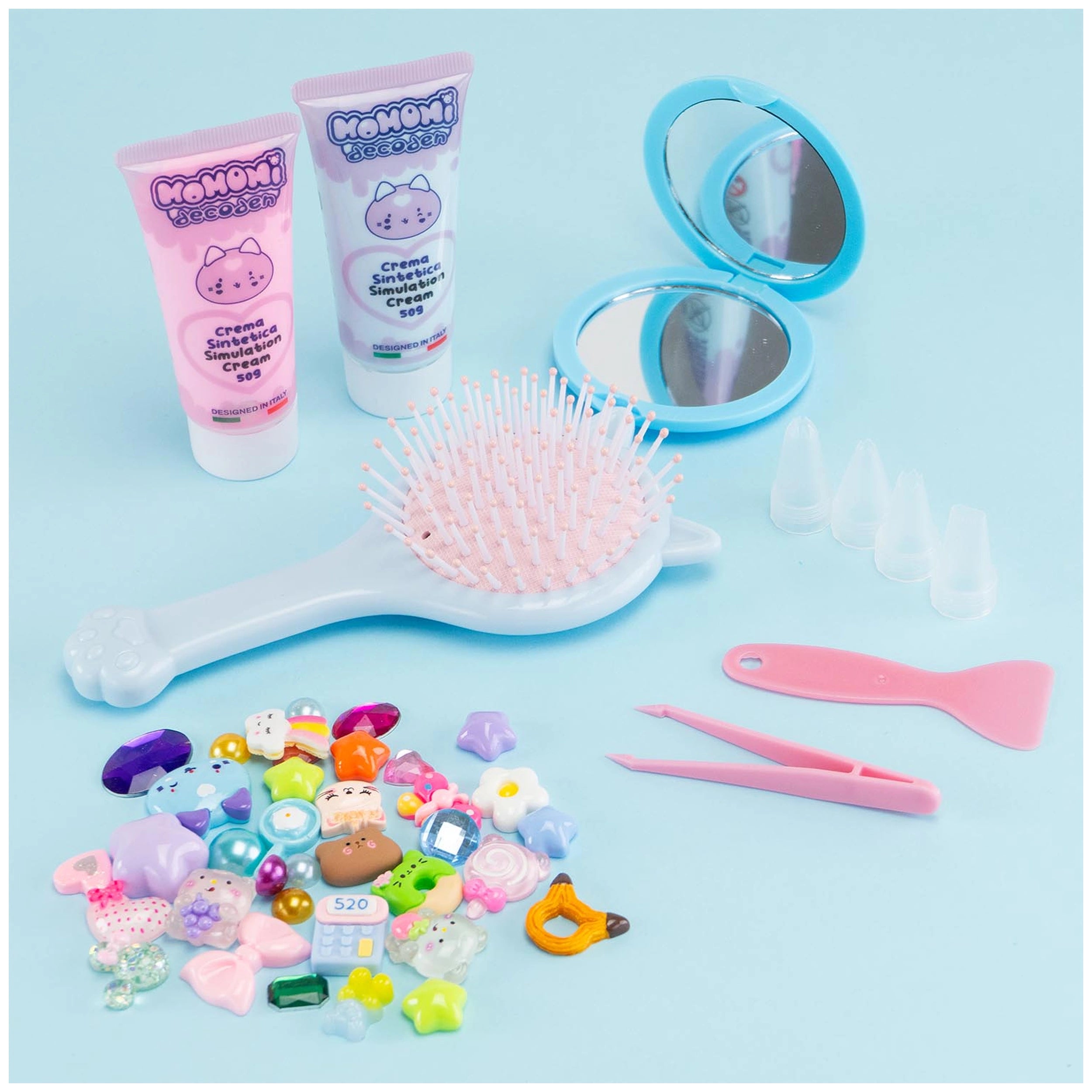 The Momomi kit includes everything you need to create a unique and personalized masterpiece. Inside the beautifully designed box, you will find a high-quality brush and a mirror, both waiting to be transformed into kawaii works of art. The kit also comes with a selection of 3D decorations, two tubes of colorful paste, four extruder tips, a spatula, and a pair of tweezers. Each component has been rigorously tested in international laboratories to ensure safety and quality, making it an ideal choice for children and parents alike.