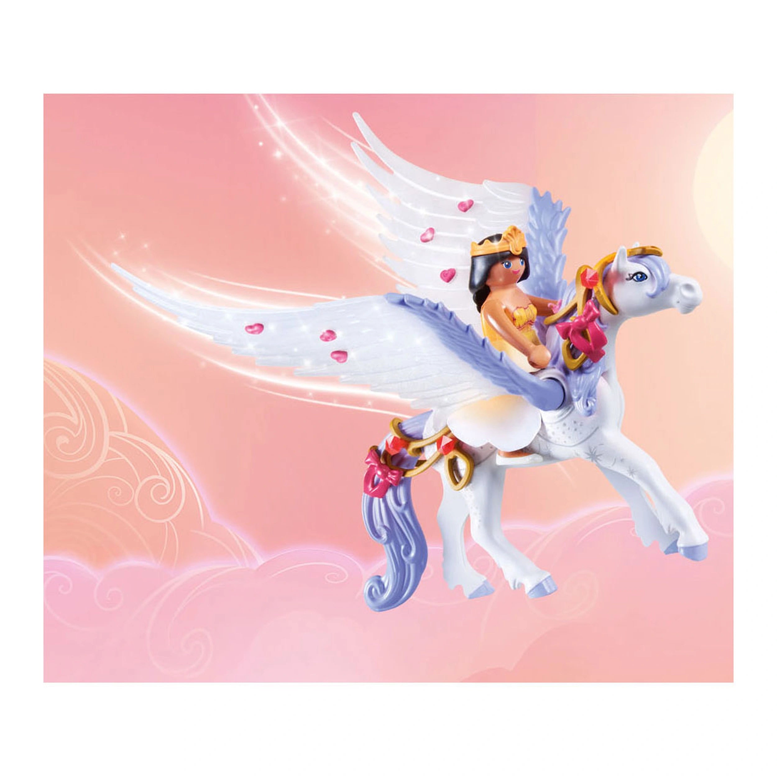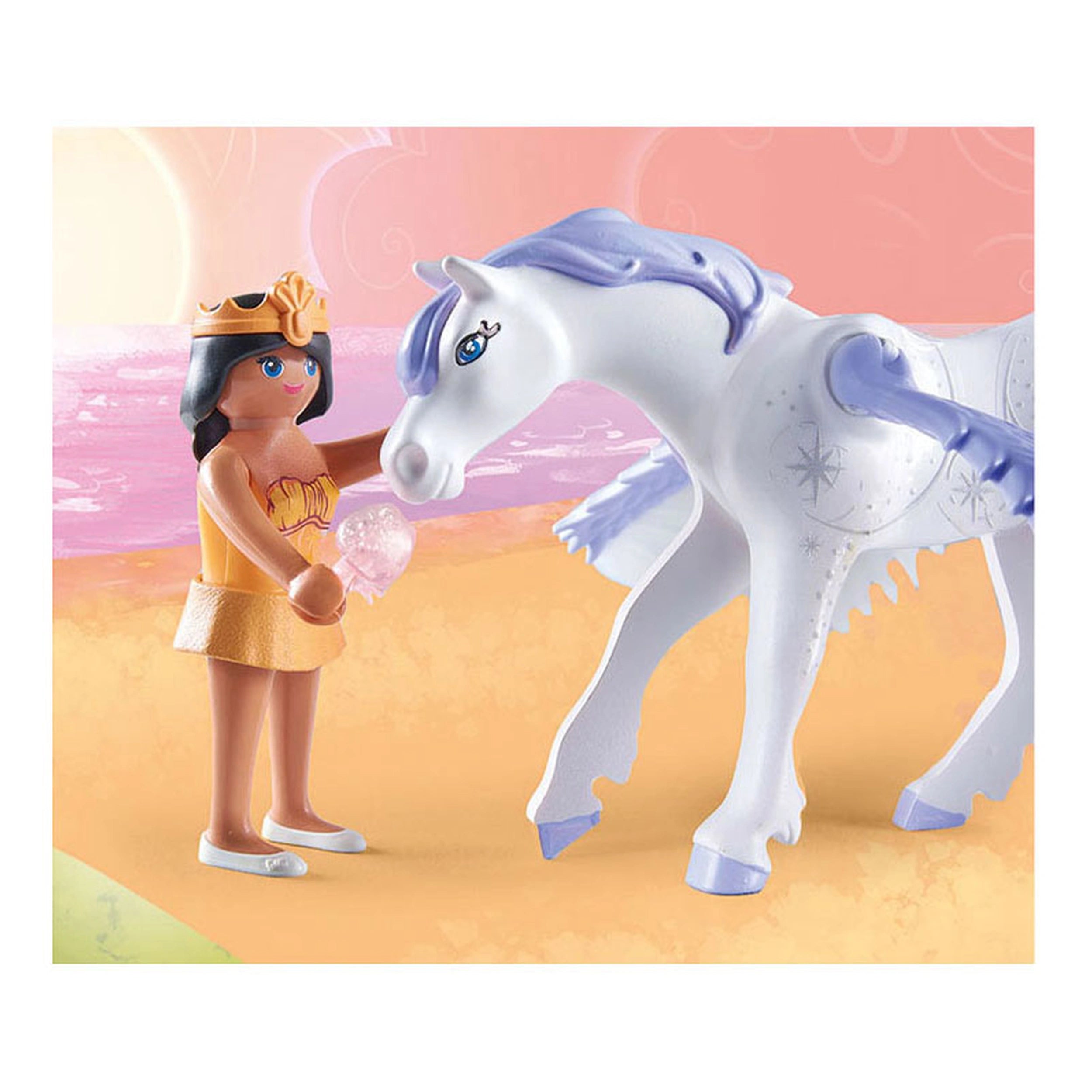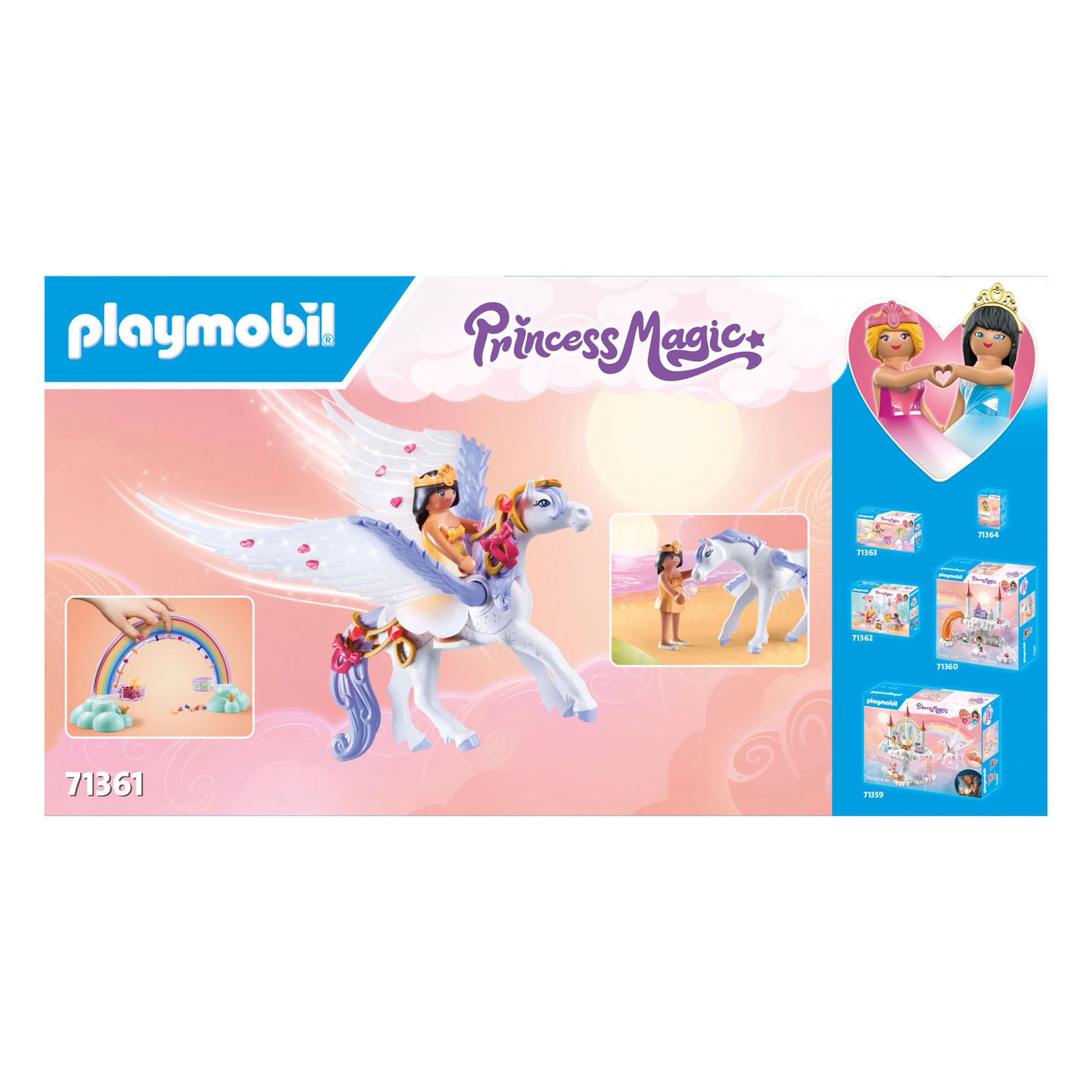 Introducing the Playmobil Princess Magic Pegasus With Rainbow - 71361, a whimsical playset that invites children into a world of fantasy and adventure. This enchanting set features the Rainbow Princess and her majestic Pegasus, designed to spark imagination and creativity in young minds. With its vibrant colors and intricate details, this playset is perfect for children who love magical stories and fairy tales.